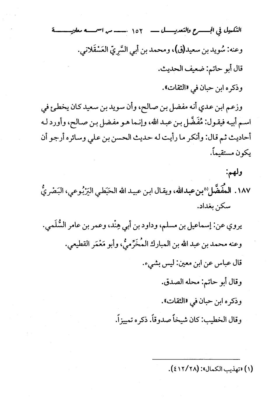 كتاب التكميل في الجرح والتعديل ومعرفة الثقات والضعفاء والمجاهيل (اسم الجزء: 1)