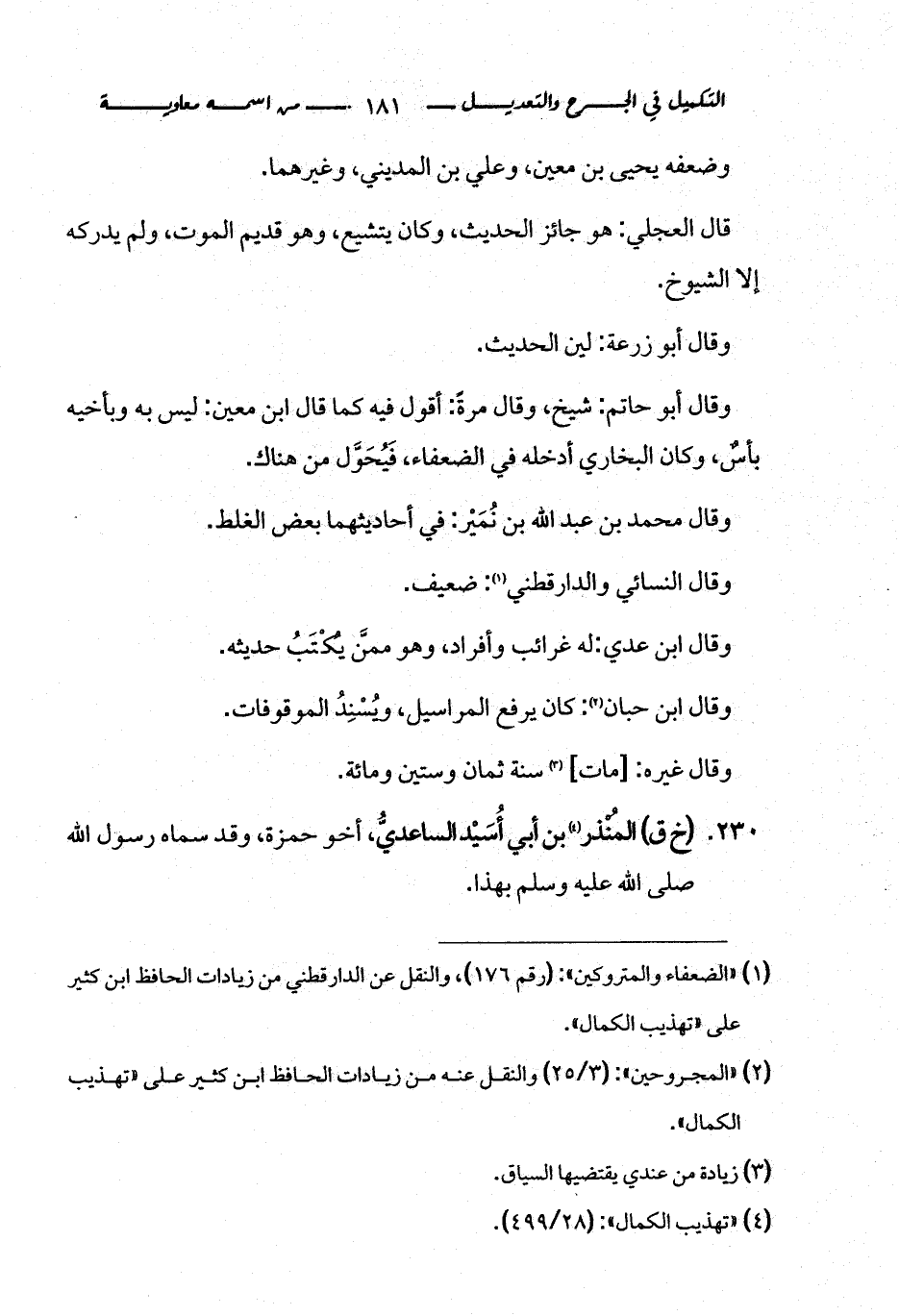 كتاب التكميل في الجرح والتعديل ومعرفة الثقات والضعفاء والمجاهيل (اسم الجزء: 1)