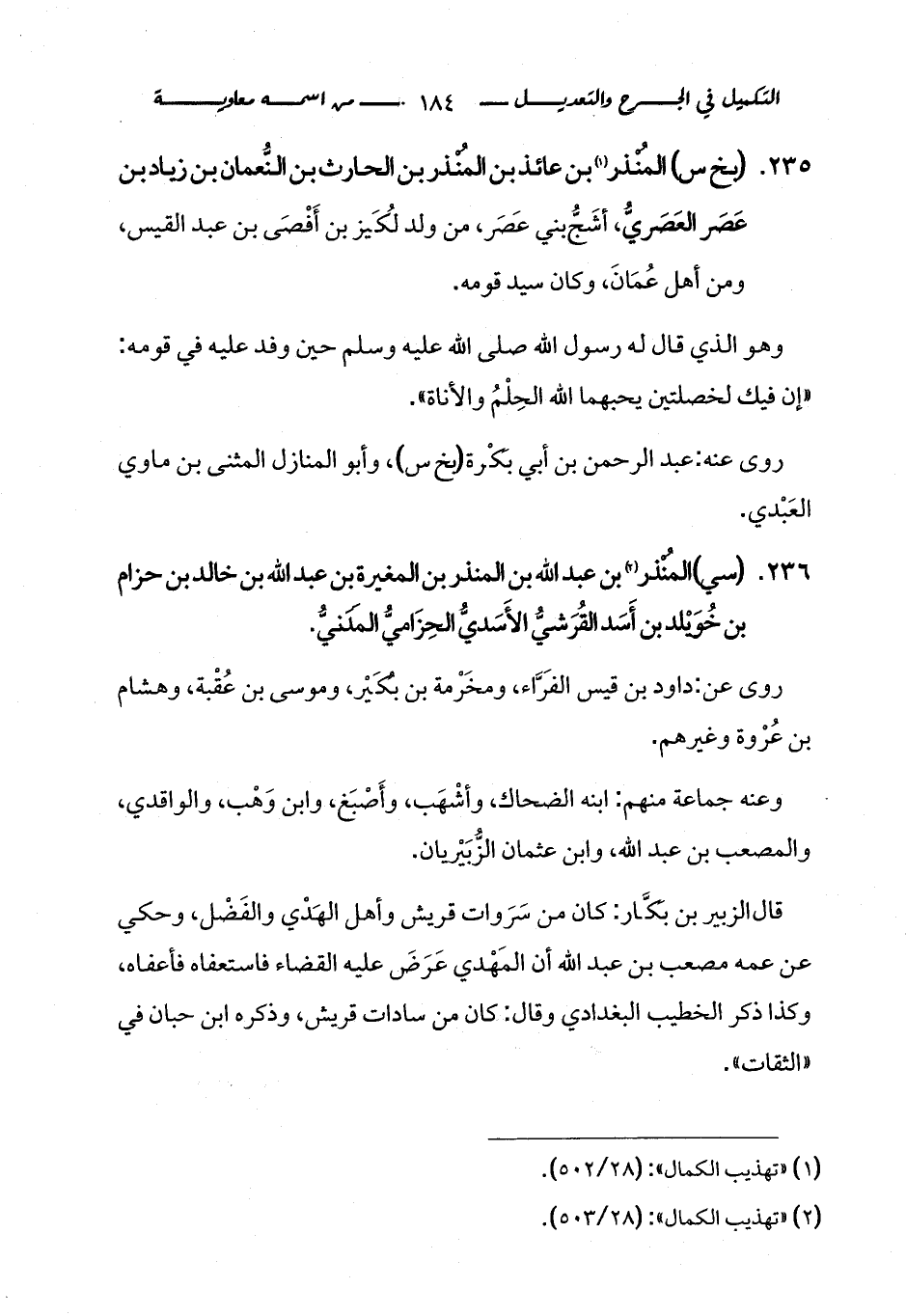 كتاب التكميل في الجرح والتعديل ومعرفة الثقات والضعفاء والمجاهيل (اسم الجزء: 1)