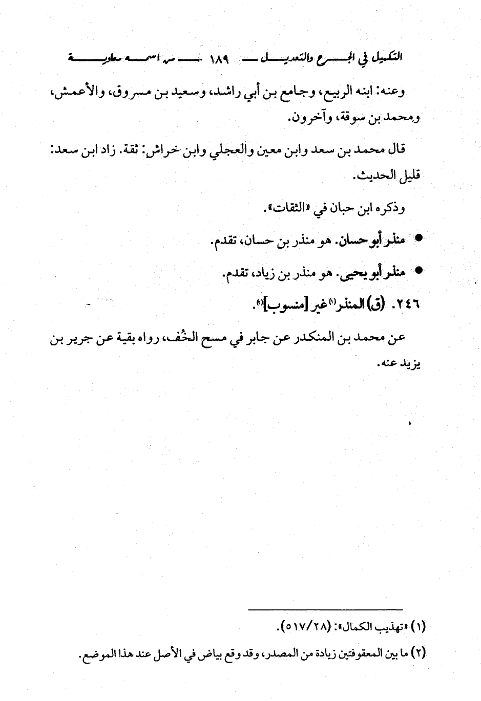 كتاب التكميل في الجرح والتعديل ومعرفة الثقات والضعفاء والمجاهيل (اسم الجزء: 1)