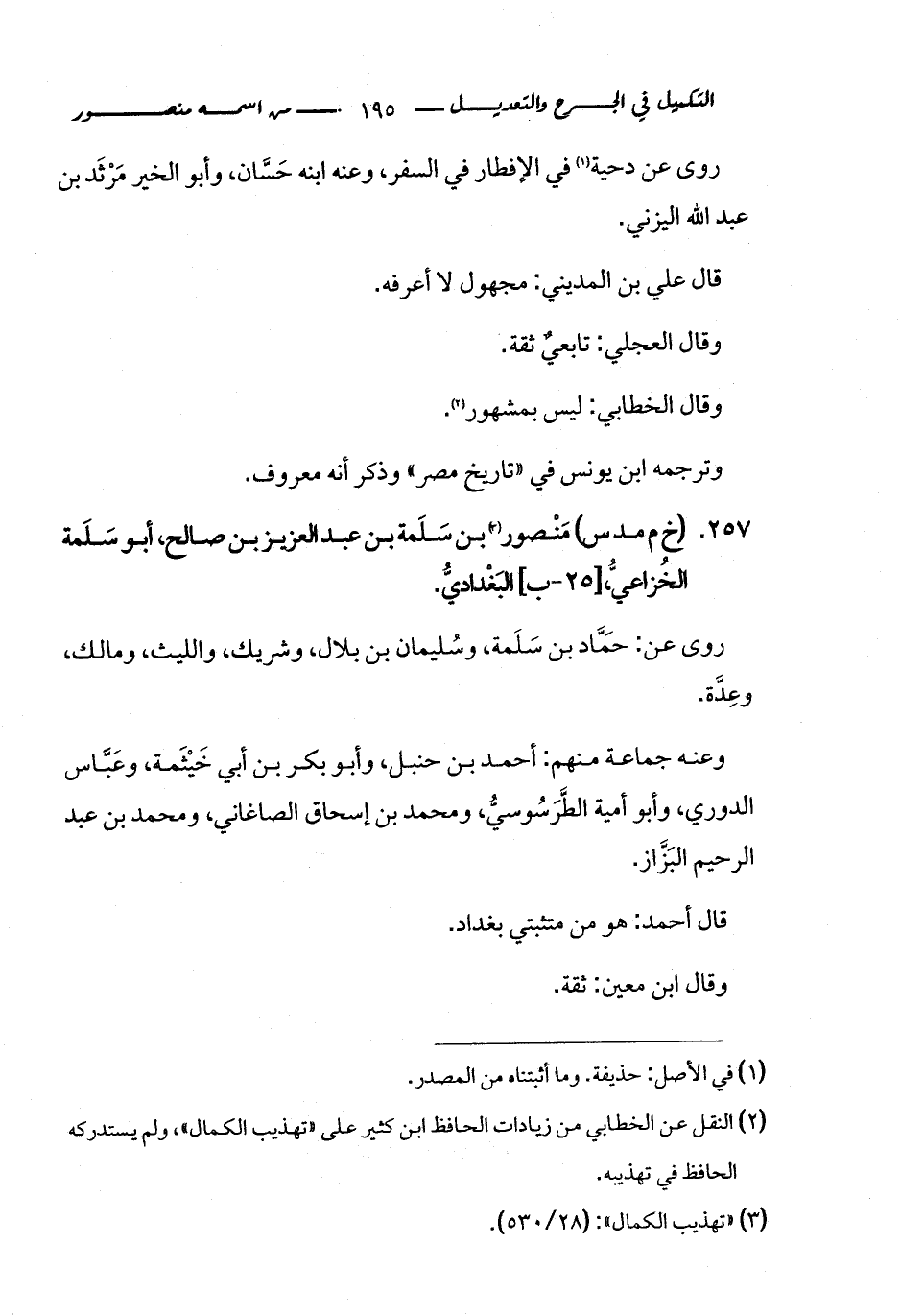 كتاب التكميل في الجرح والتعديل ومعرفة الثقات والضعفاء والمجاهيل (اسم الجزء: 1)