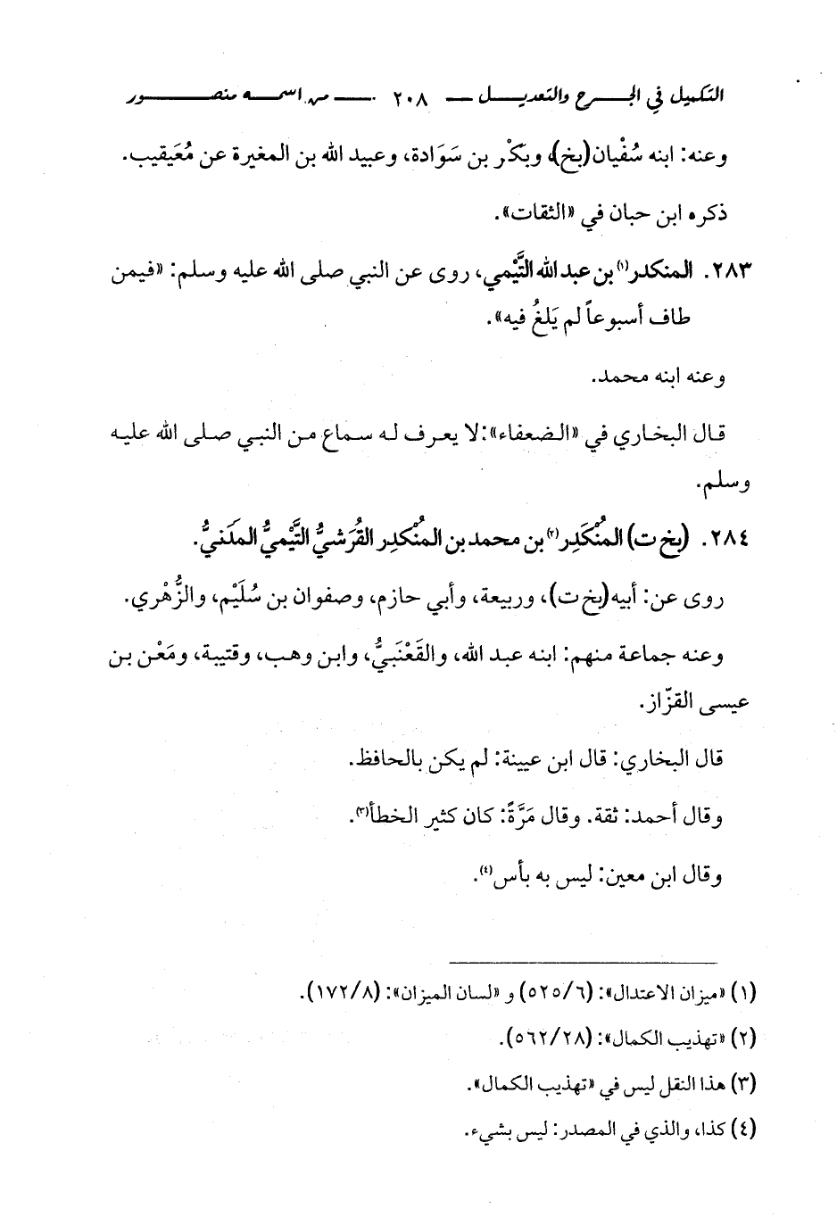 كتاب التكميل في الجرح والتعديل ومعرفة الثقات والضعفاء والمجاهيل (اسم الجزء: 1)