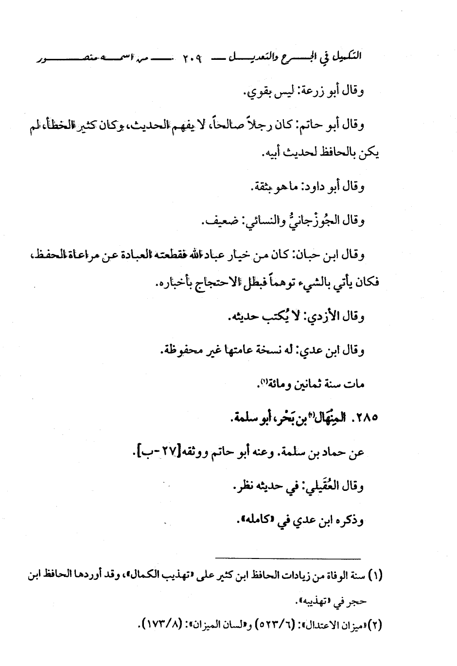 كتاب التكميل في الجرح والتعديل ومعرفة الثقات والضعفاء والمجاهيل (اسم الجزء: 1)