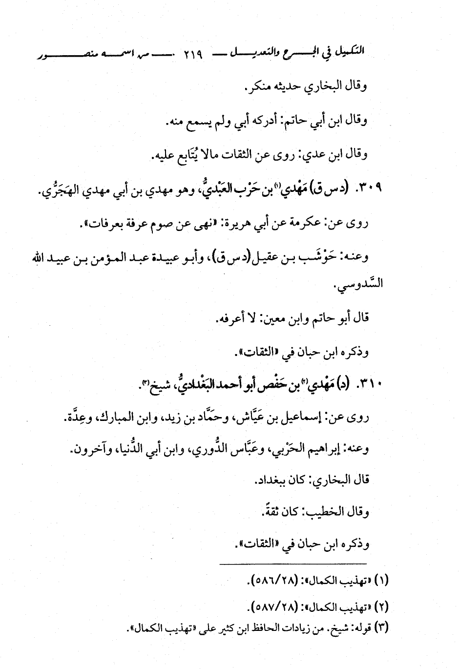 كتاب التكميل في الجرح والتعديل ومعرفة الثقات والضعفاء والمجاهيل (اسم الجزء: 1)