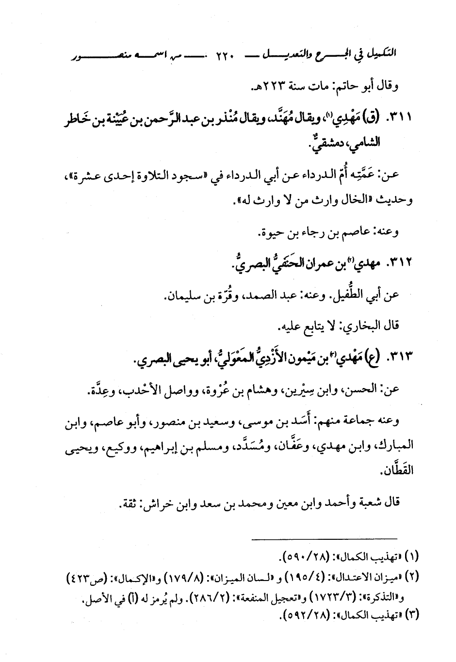 312 - مهدي (¬2) بن عمران الحَنَفيُّ البصريُّ.