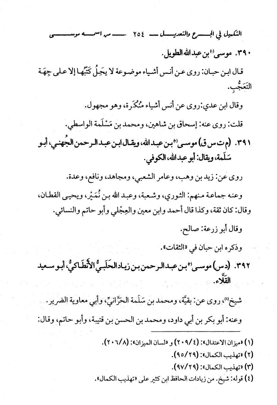 391 - (م ت س ق) موسى (¬2) بن عبد الله، ويقال ابن عبد الرحمن الجُهني، أبو سَلَمة، ويقال: أبو عبد الله، الكوفي.