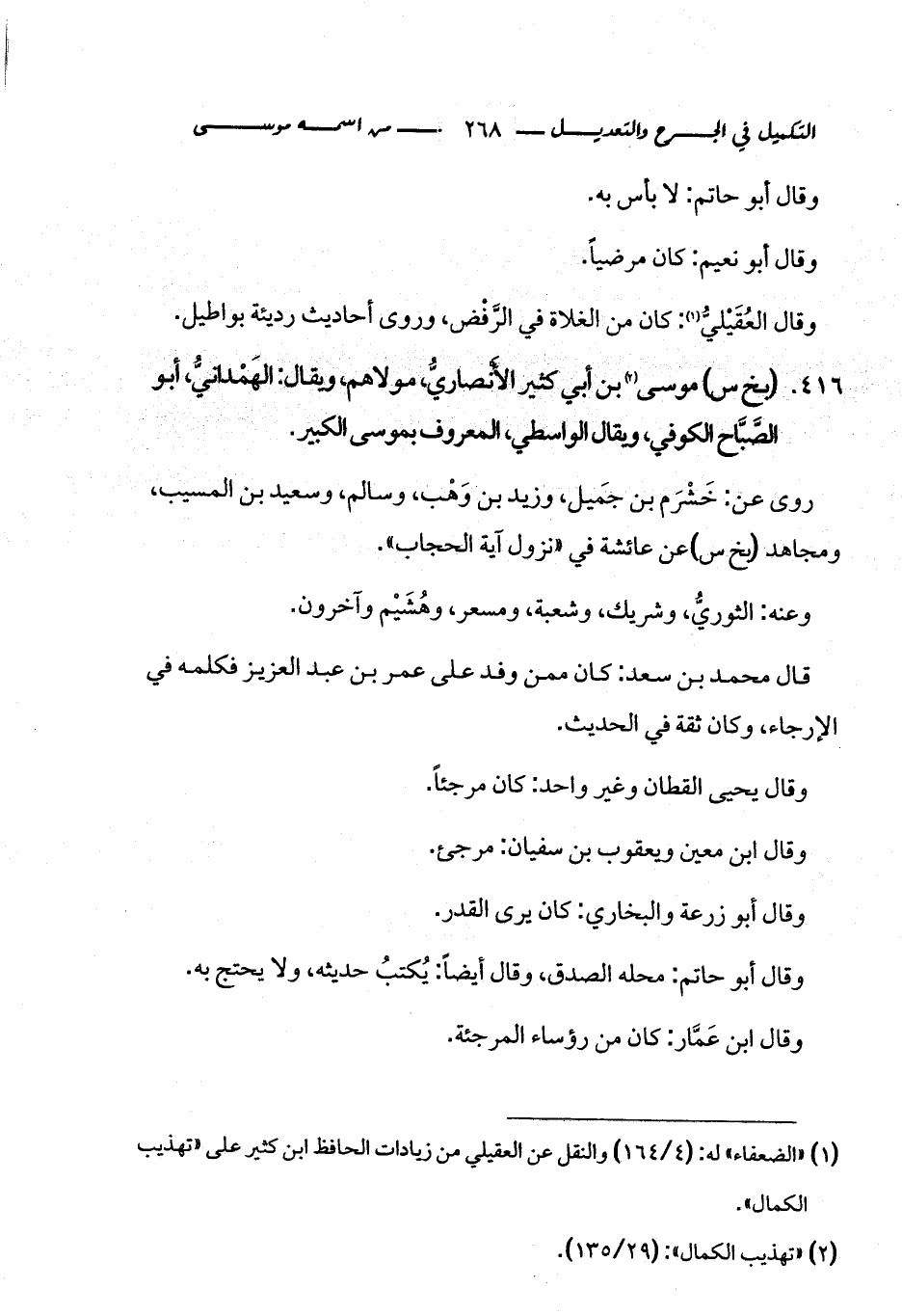 كتاب التكميل في الجرح والتعديل ومعرفة الثقات والضعفاء والمجاهيل (اسم الجزء: 1)