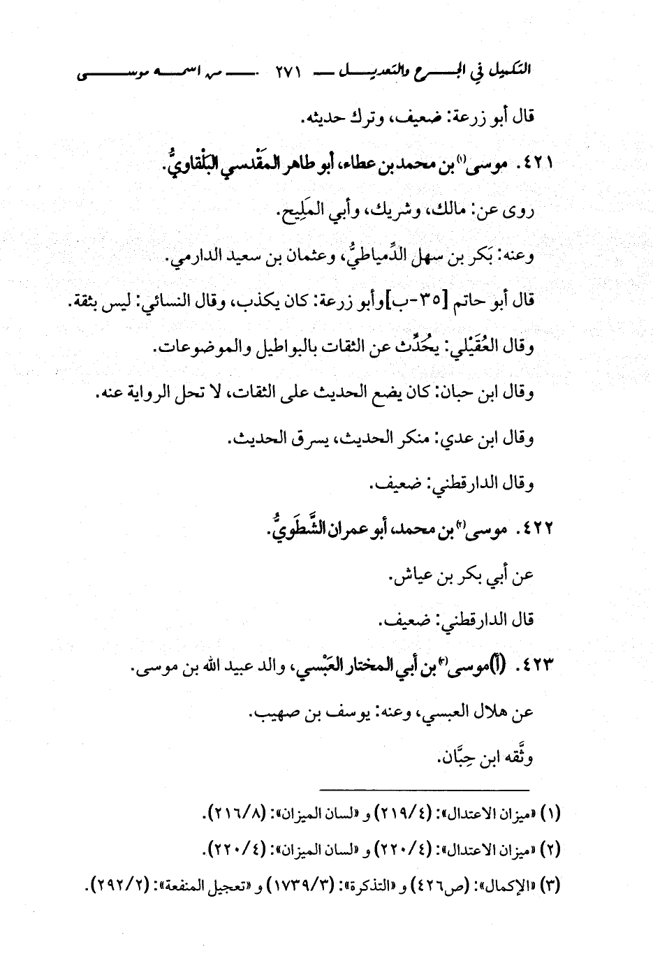 كتاب التكميل في الجرح والتعديل ومعرفة الثقات والضعفاء والمجاهيل (اسم الجزء: 1)