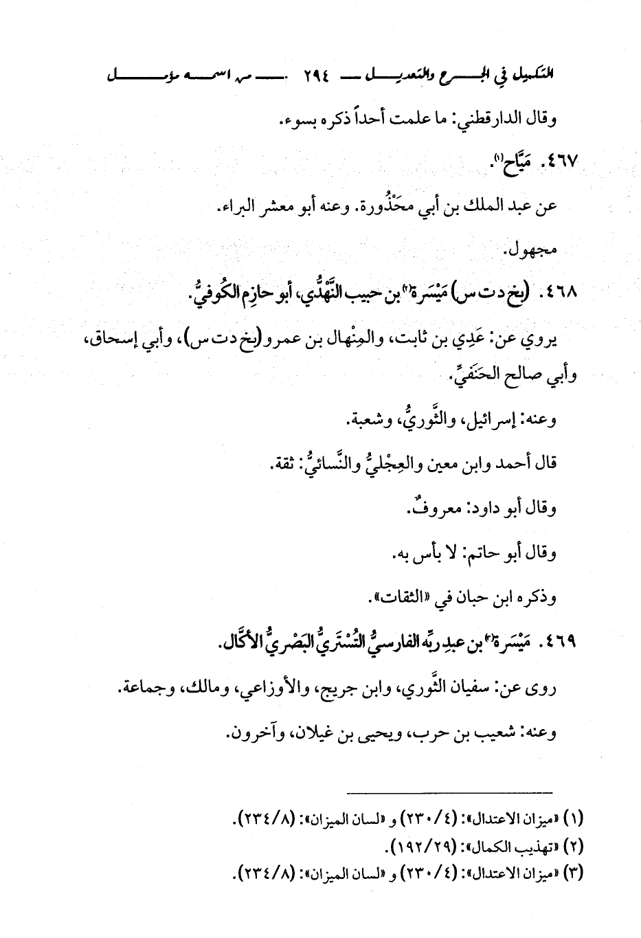 468 - (بخ د ت س) مَيْسَرة (¬2) بن حبيب النَّهْدُّي، أبو حازِم الكُوفيُّ.