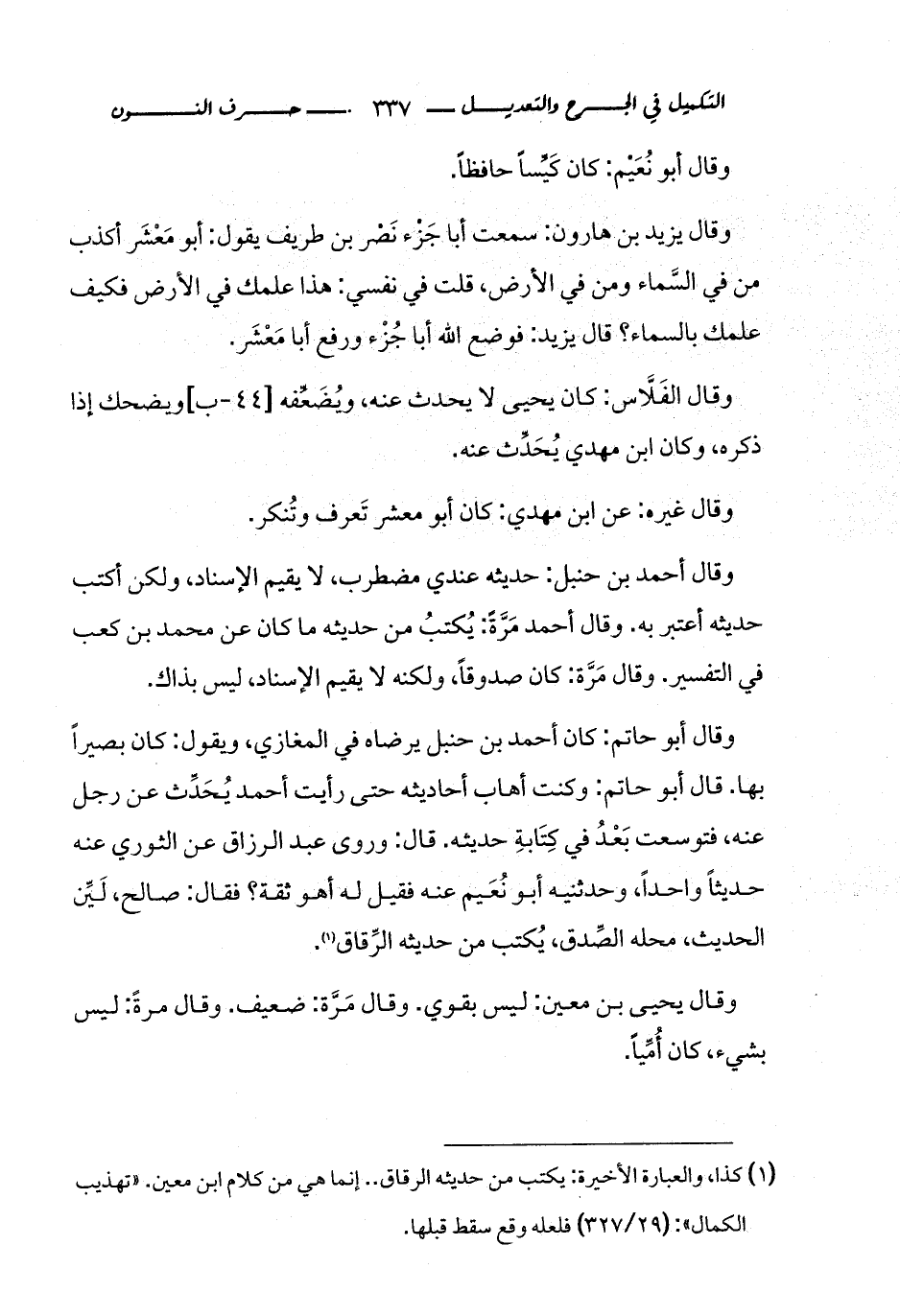 كتاب التكميل في الجرح والتعديل ومعرفة الثقات والضعفاء والمجاهيل (اسم الجزء: 1)