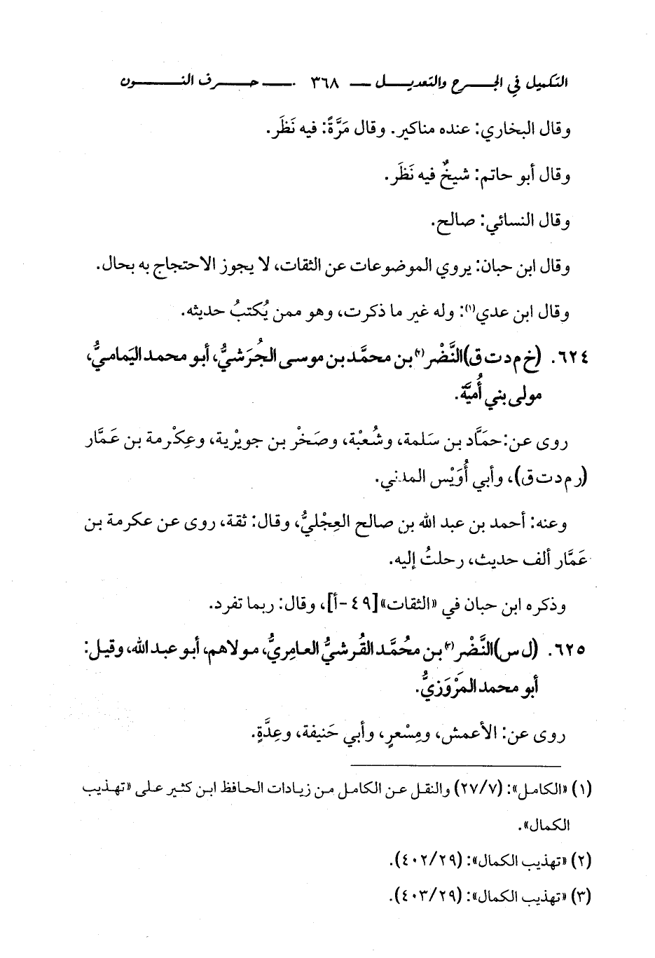 كتاب التكميل في الجرح والتعديل ومعرفة الثقات والضعفاء والمجاهيل (اسم الجزء: 1)