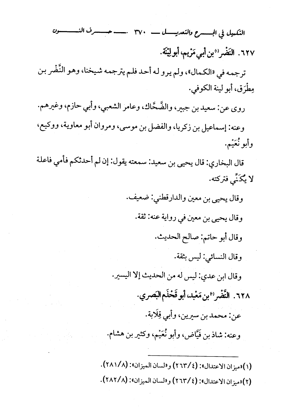 كتاب التكميل في الجرح والتعديل ومعرفة الثقات والضعفاء والمجاهيل (اسم الجزء: 1)