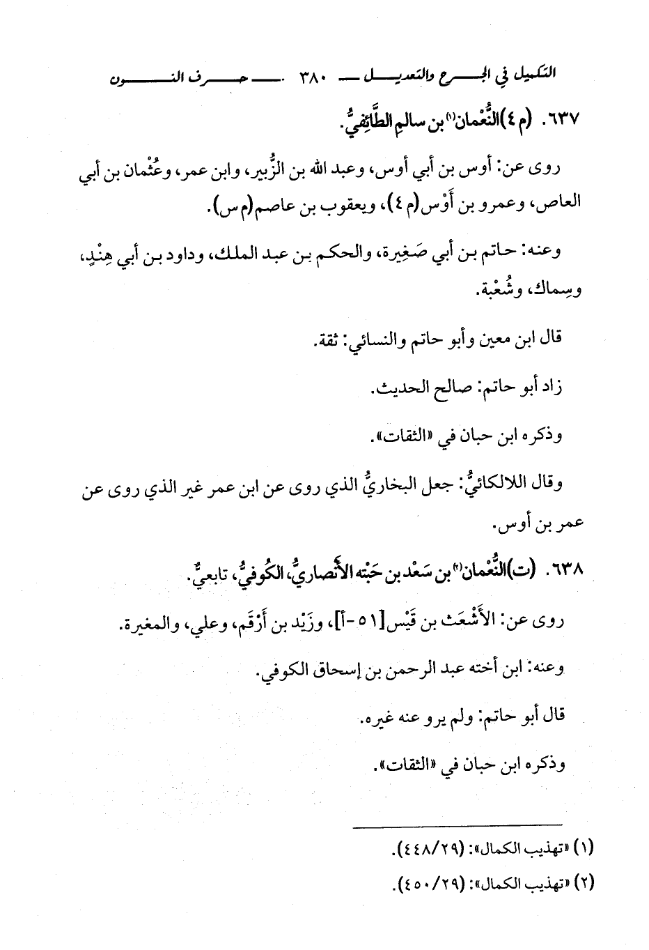 638 - (ت) النُّعْمان (¬2) بن سَعْد بن حَبْته الأَنْصاريُّ، الكُوفيُّ، تابعيٌّ.
