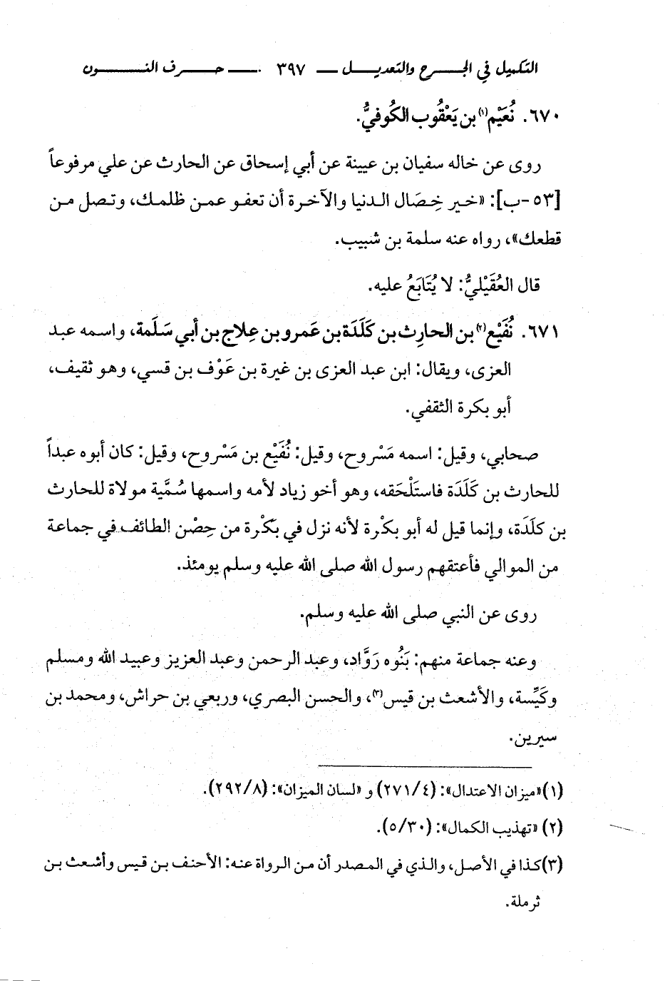 كتاب التكميل في الجرح والتعديل ومعرفة الثقات والضعفاء والمجاهيل (اسم الجزء: 1)
