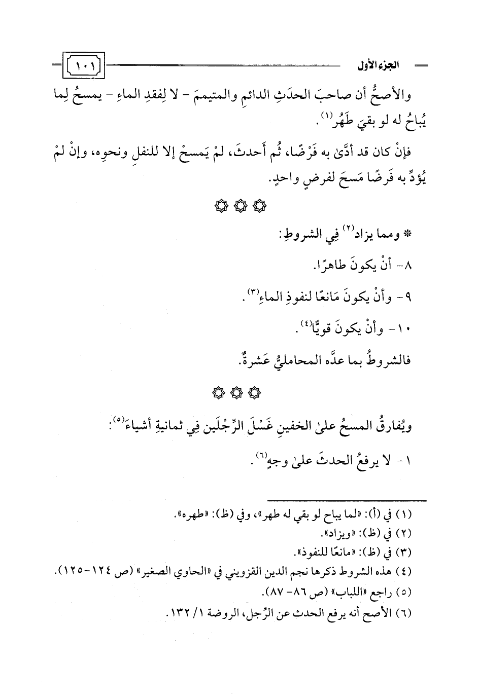 (¬4) هذه الشروط ذكرها نجم الدين القزويني في "الحاوي الصغير" (ص 124 - 125).