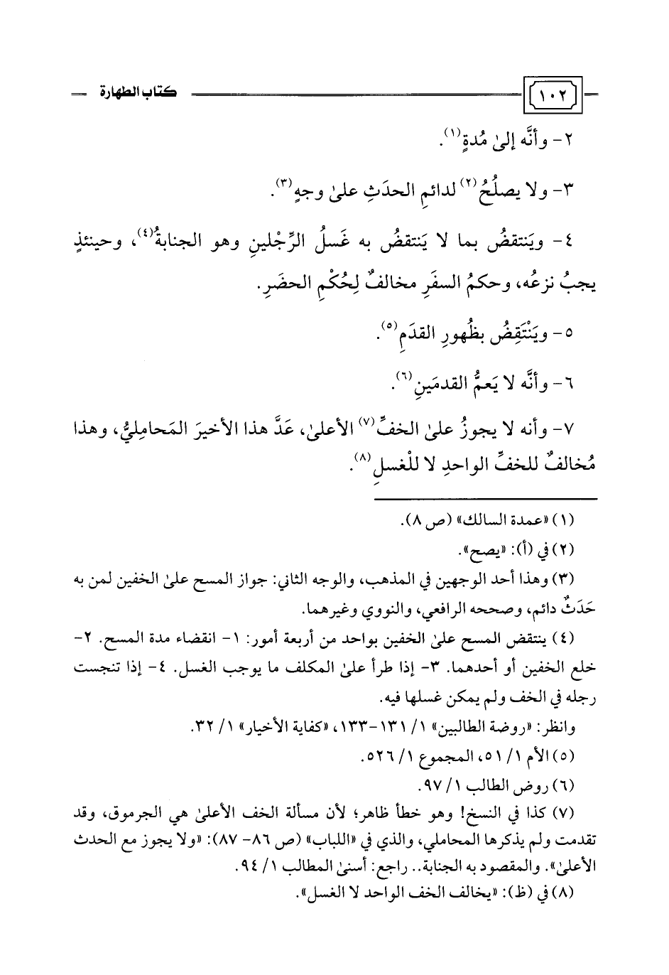 (¬3) وهذا أحد الوجهين في المذهب، والوجه الثاني: جواز المسح على الخفين لمن به حَدَثٌ دائم، وصححه الرافعي، والنووي وغيرهما.