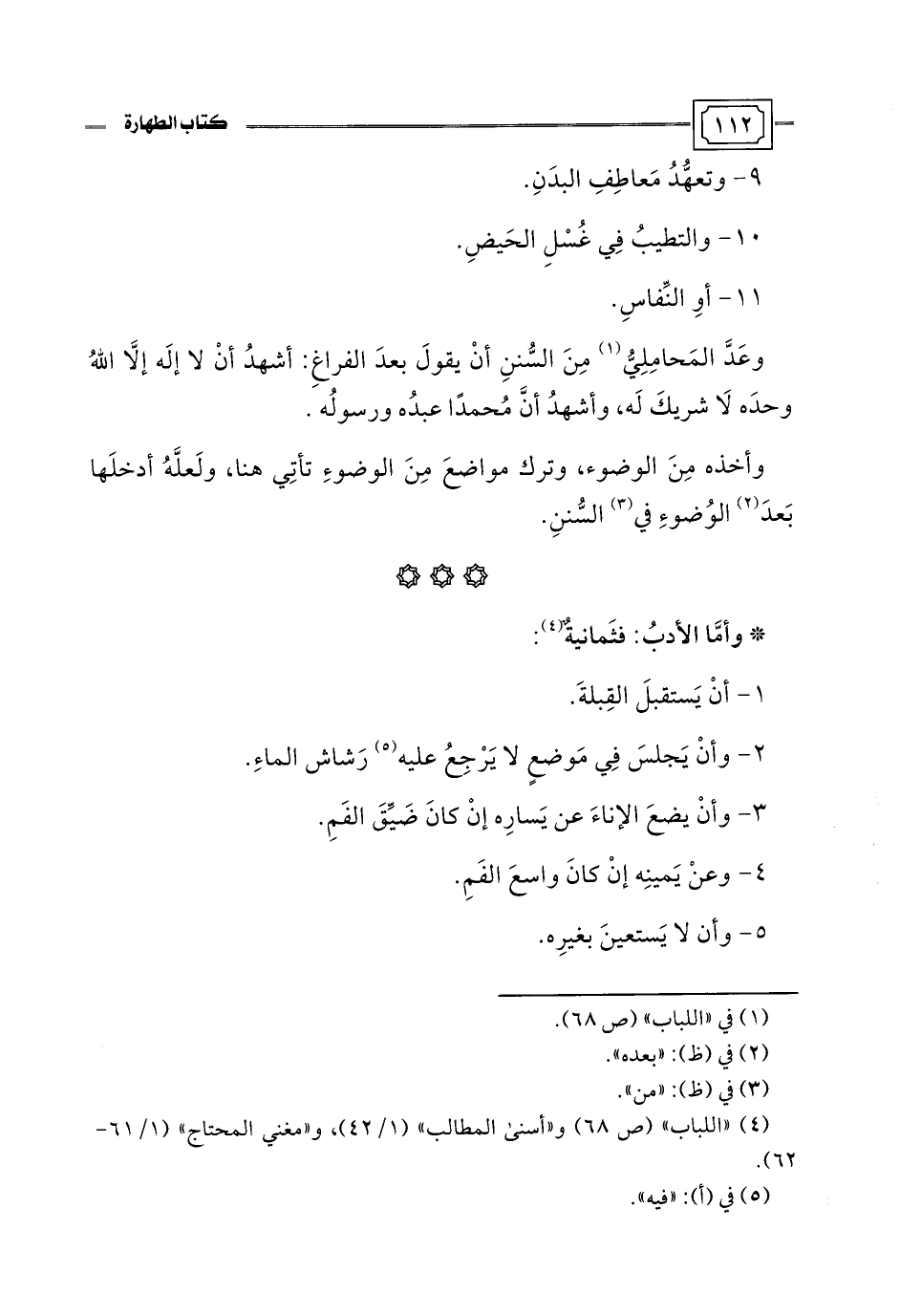 (¬4) "اللباب" (ص 68) و"أسنى المطالب" (1/ 42)، و"مغني المحتاج" (1/ 61 - 62).