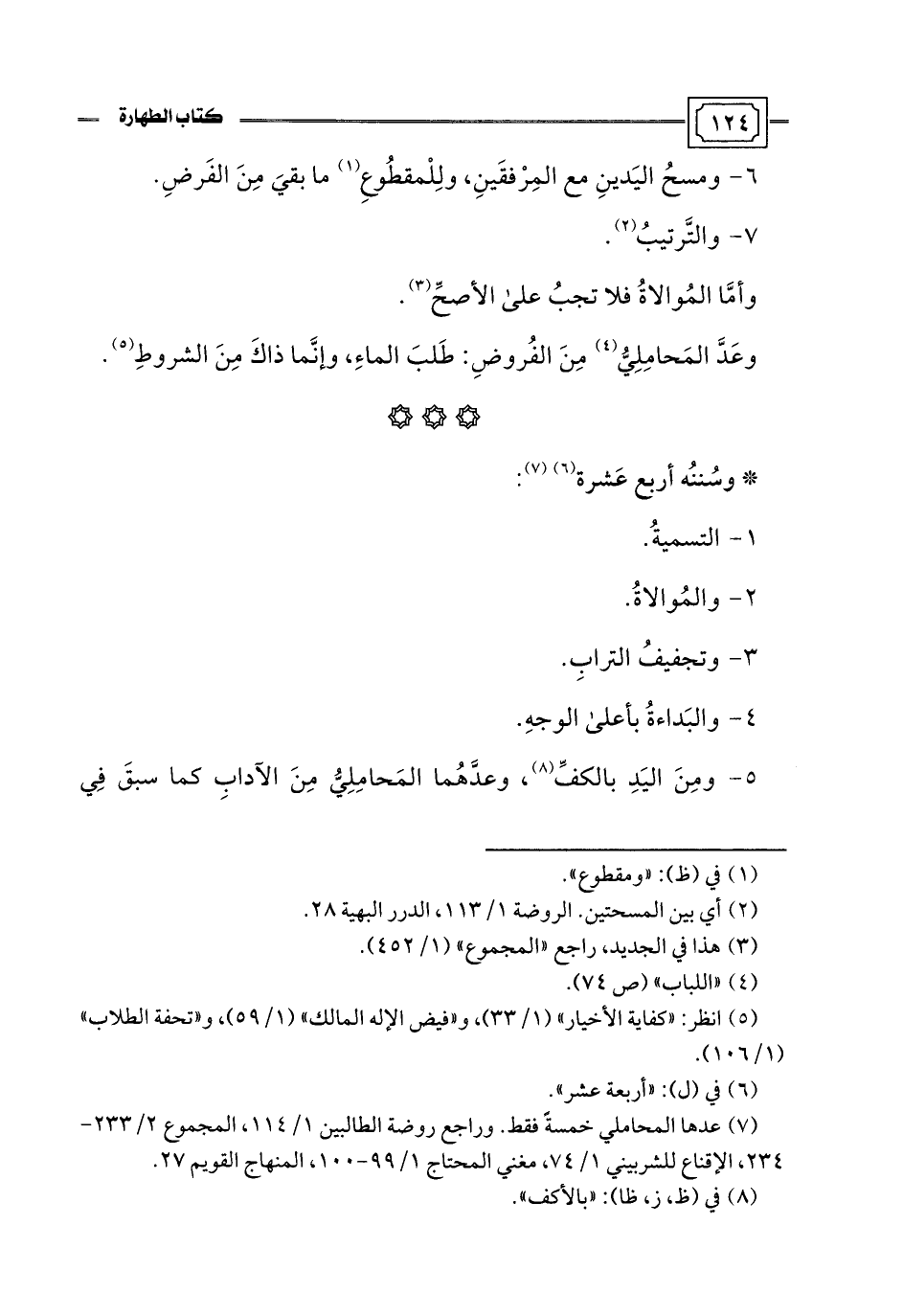 (¬7) عدها المحاملي خمسةً فقط. وراجع روضة الطالبين 1/ 114، المجموع 2/ 233 - 234، الإقناع للشربيني 1/ 74، مغني المحتاج 1/ 99 - 100، المنهاج القويم 27.