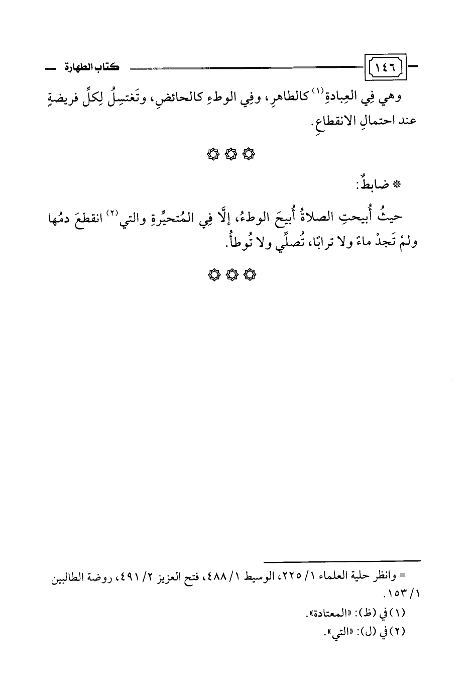 = وانظر حلية العلماء 1/ 225، الوسيط 1/ 488، فتح العزيز 2/ 491، روضة الطالبين 1/ 153.