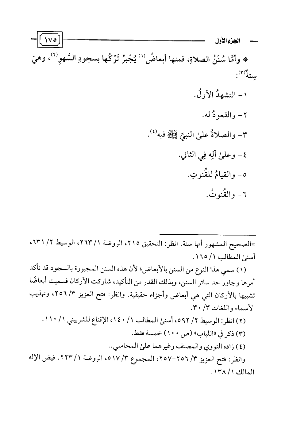 (¬1) سمي هذا النوع من السنن بالأبعاض؛ لأن هذه السنن المجبورة بالسجود قد تأكد أمرها وجاوز حد سائر السنن، وبذلك القدر من التأكيد، شاركت الأركان فسميت أبعاضًا تشبيها بالأركان التي هي أبعاض وأجزاء حقيقية. وانظر: فتح العزيز 3/ 256، وتهذيب الأسماء واللغات 3/ 30.
