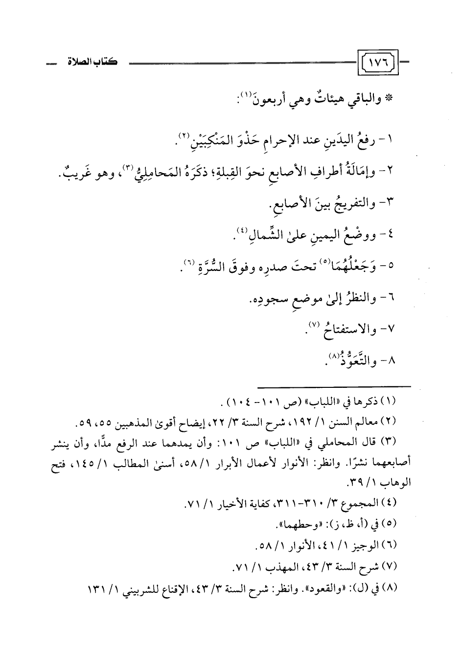 (¬3) قال المحاملي في "اللباب" ص 101: وأن يمدهما عند الرفع مدًّا، وأن ينشر أصابعهما نشرًا. وانظر: الأنوار لأعمال الأبرار 1/ 58، أسنى المطالب 1/ 145، فتح الوهاب 1/ 39.