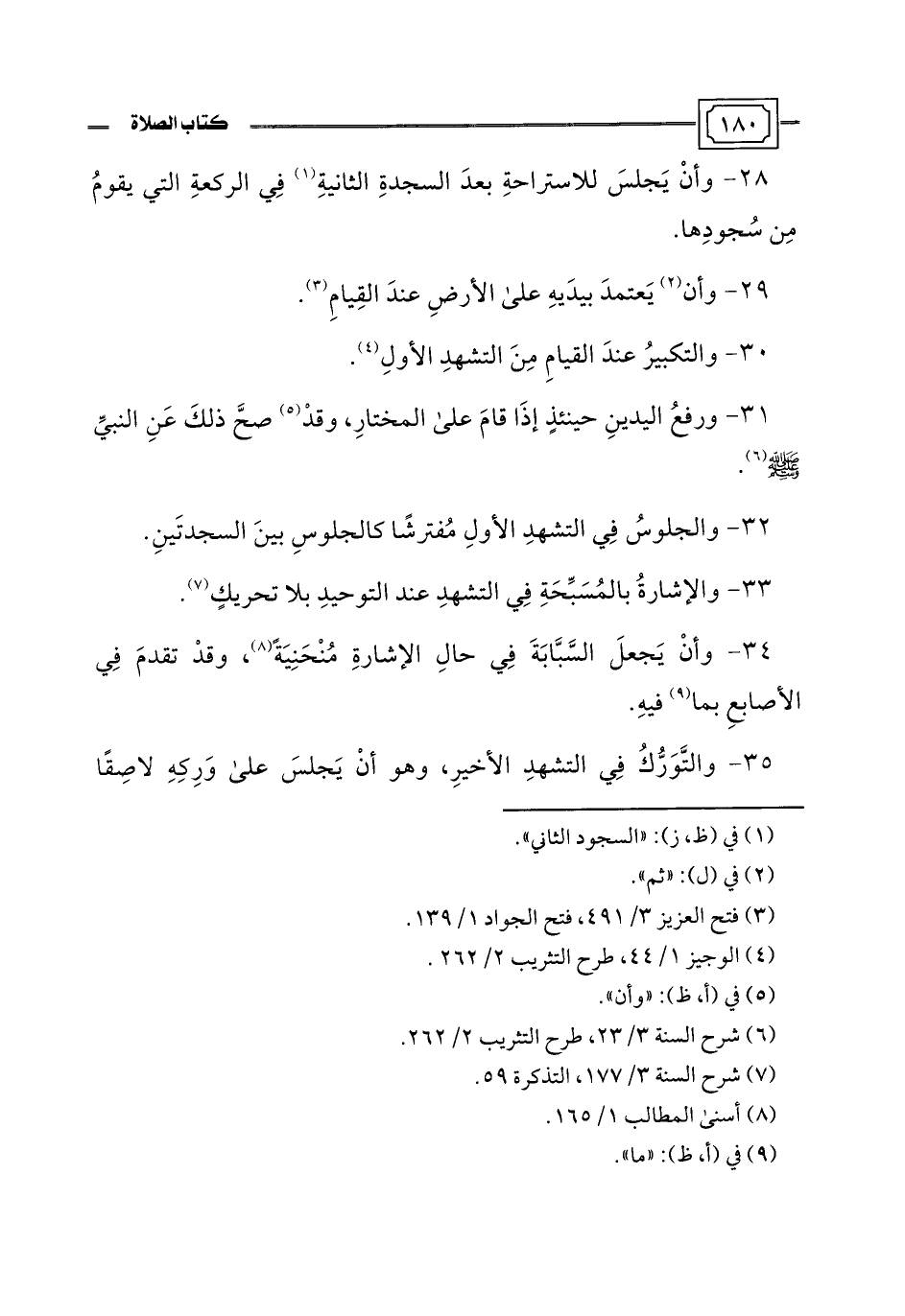 34 - وأنْ يَجعلَ السَّبَّابَةَ فِي حالِ الإشارةِ مُنْحَنِيَةً (¬8)، وقدْ تقدمَ فِي الأصابعِ بما (¬9) فيهِ.