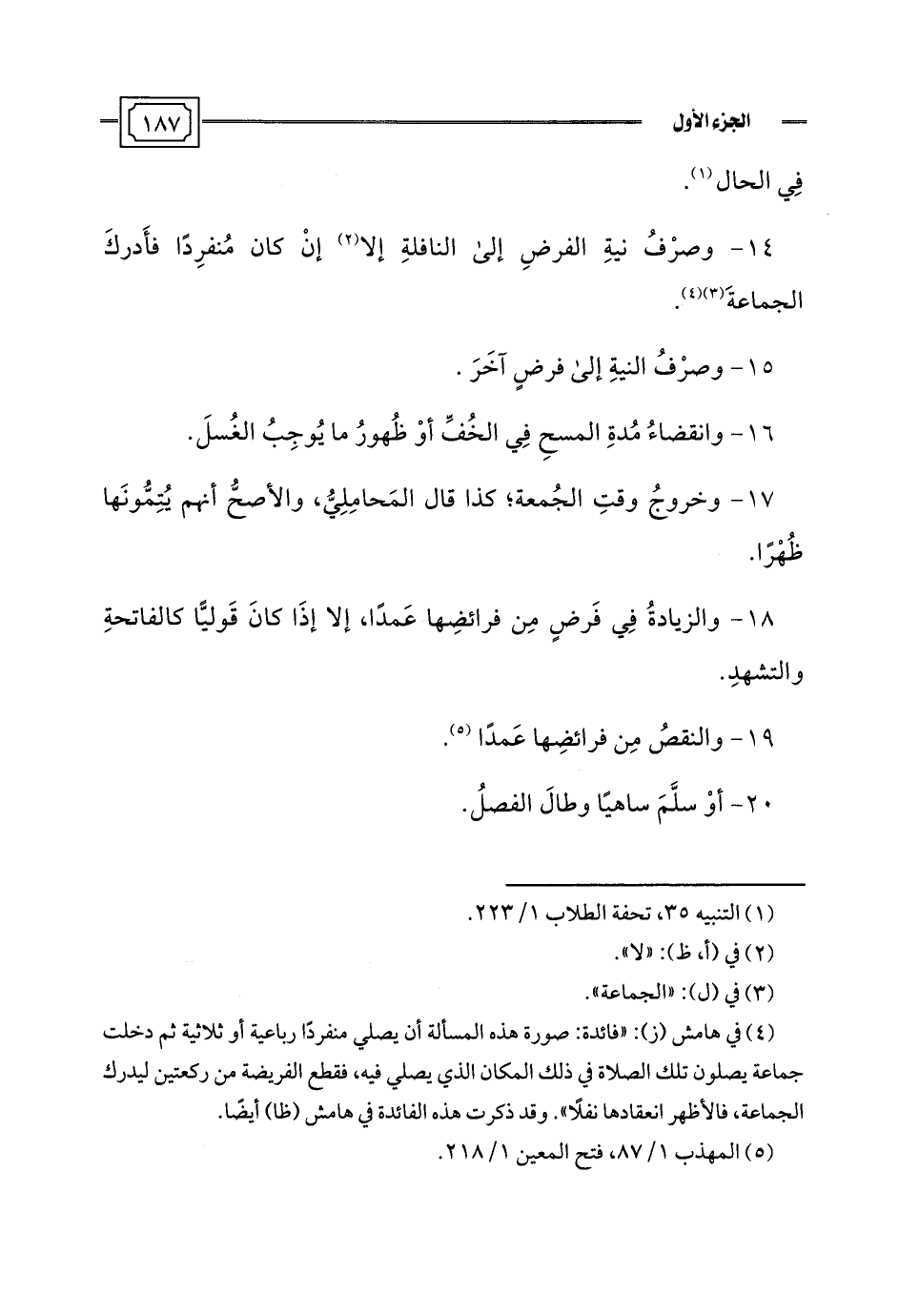 (¬1) التنبيه 35، تحفة الطلاب 1/ 223.