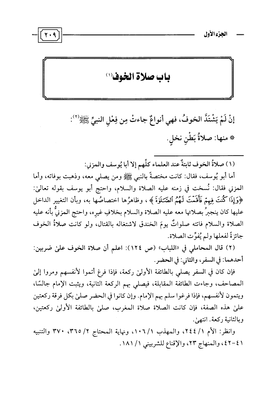 (¬1) صلاةُ الخوف ثابتةٌ عند العلماء كلِّهم إلا أبا يُوسف والمزني: