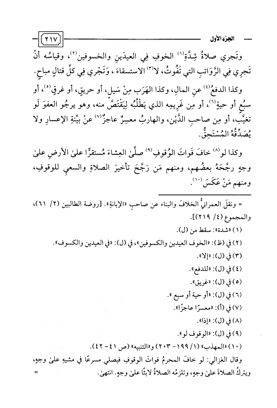 وقال الغزالي: لو خافَ المحرمُ فواتَ الوقوفِ فيصلي مسرعًا في مشيهِ على وجهٍ، ويتركُ الصلاةَ على وجهٍ، وتلزمُه الصلاةُ لابثًا على وجهٍ. انتهى. =