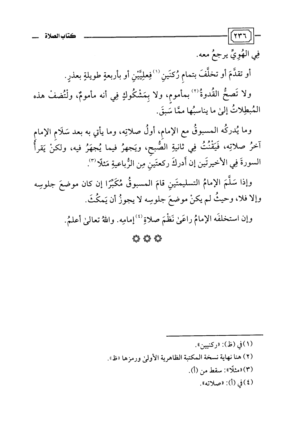 (¬2) هنا نهاية نسخة المكتبة الظاهرية الأولى ورمزها "ظ".
