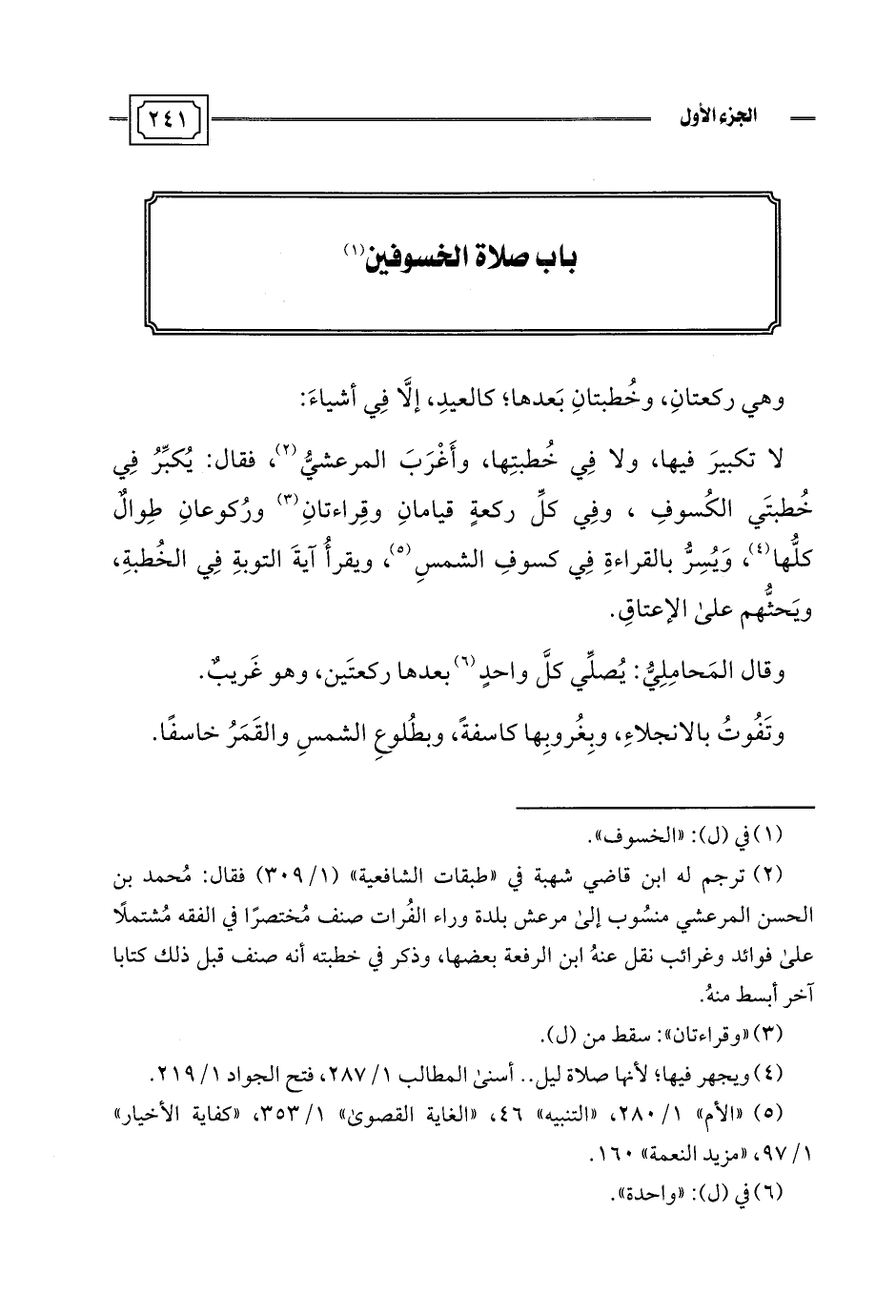 (¬5) "الأم" 1/ 280، "التنبيه" 46، "الغاية القصوى" 1/ 353، "كفاية الأخيار" 1/ 97، "مزيد النعمة" 160.