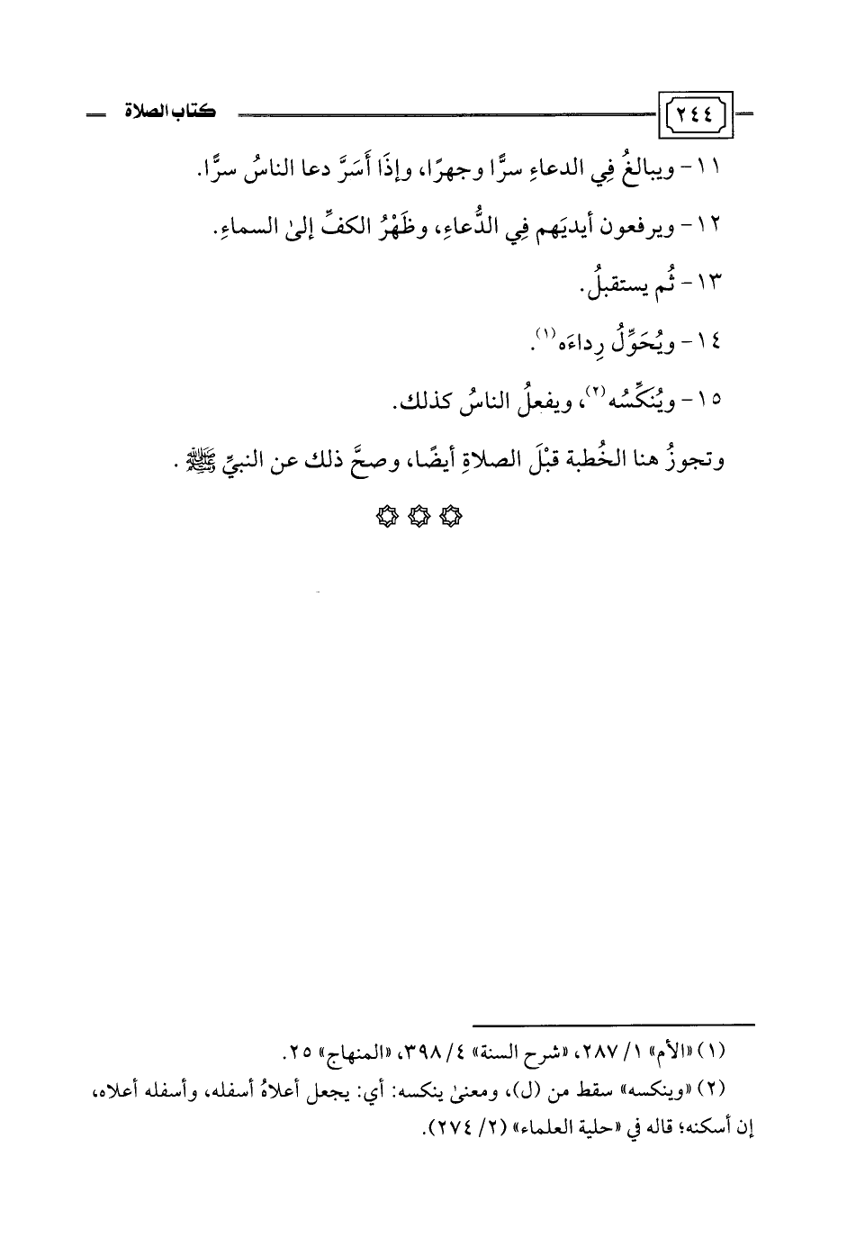 (¬1) "الأم" 1/ 287، "شرح السنة" 4/ 398، "المنهاج" 25.