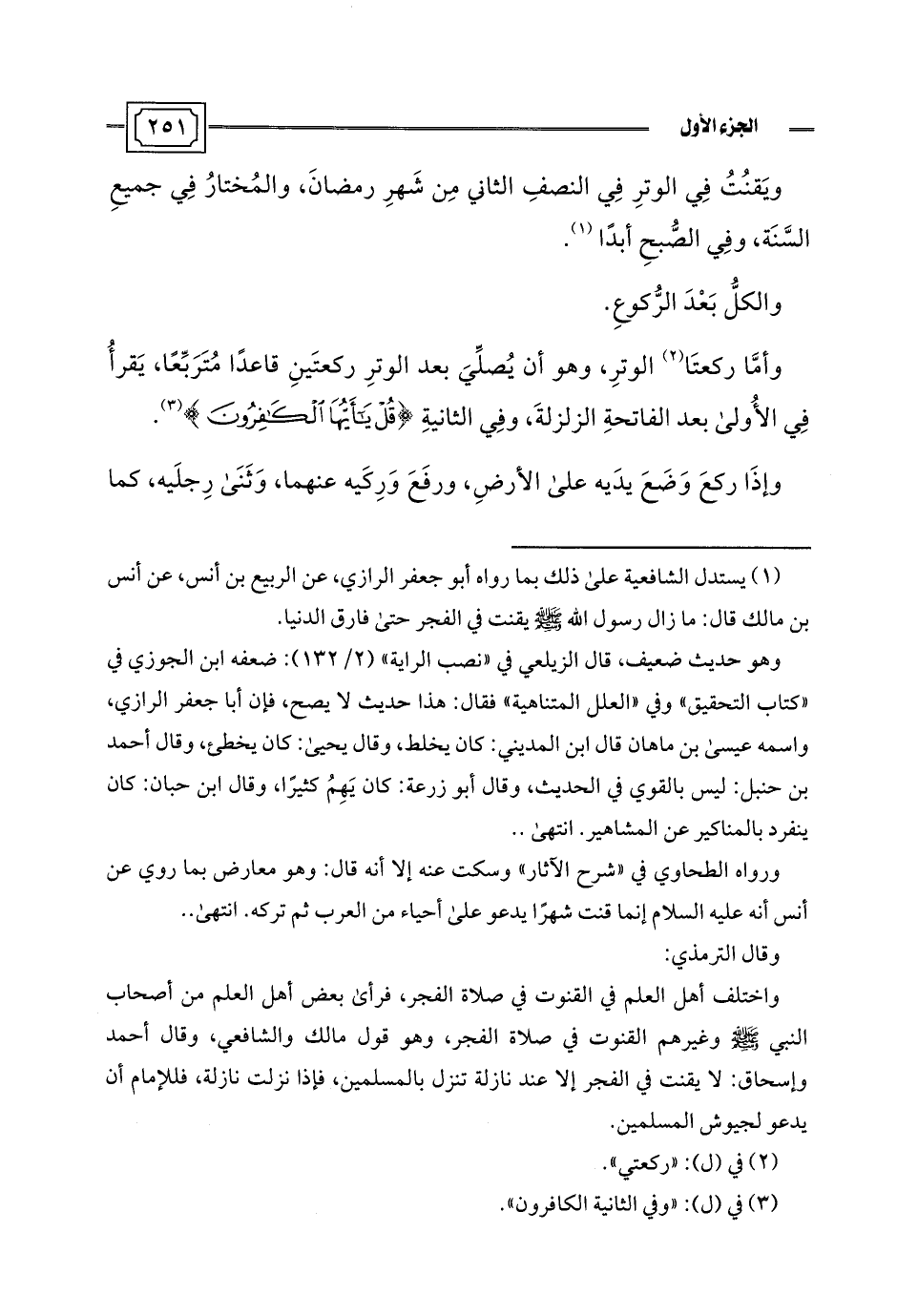 (¬1) يستدل الشافعية على ذلك بما رواه أبو جعفر الرازي، عن الربيع بن أنس، عن أنس بن مالك قال: ما زال رسول اللَّه -صلى اللَّه عليه وسلم- يقنت في الفجر حتى فارق الدنيا.