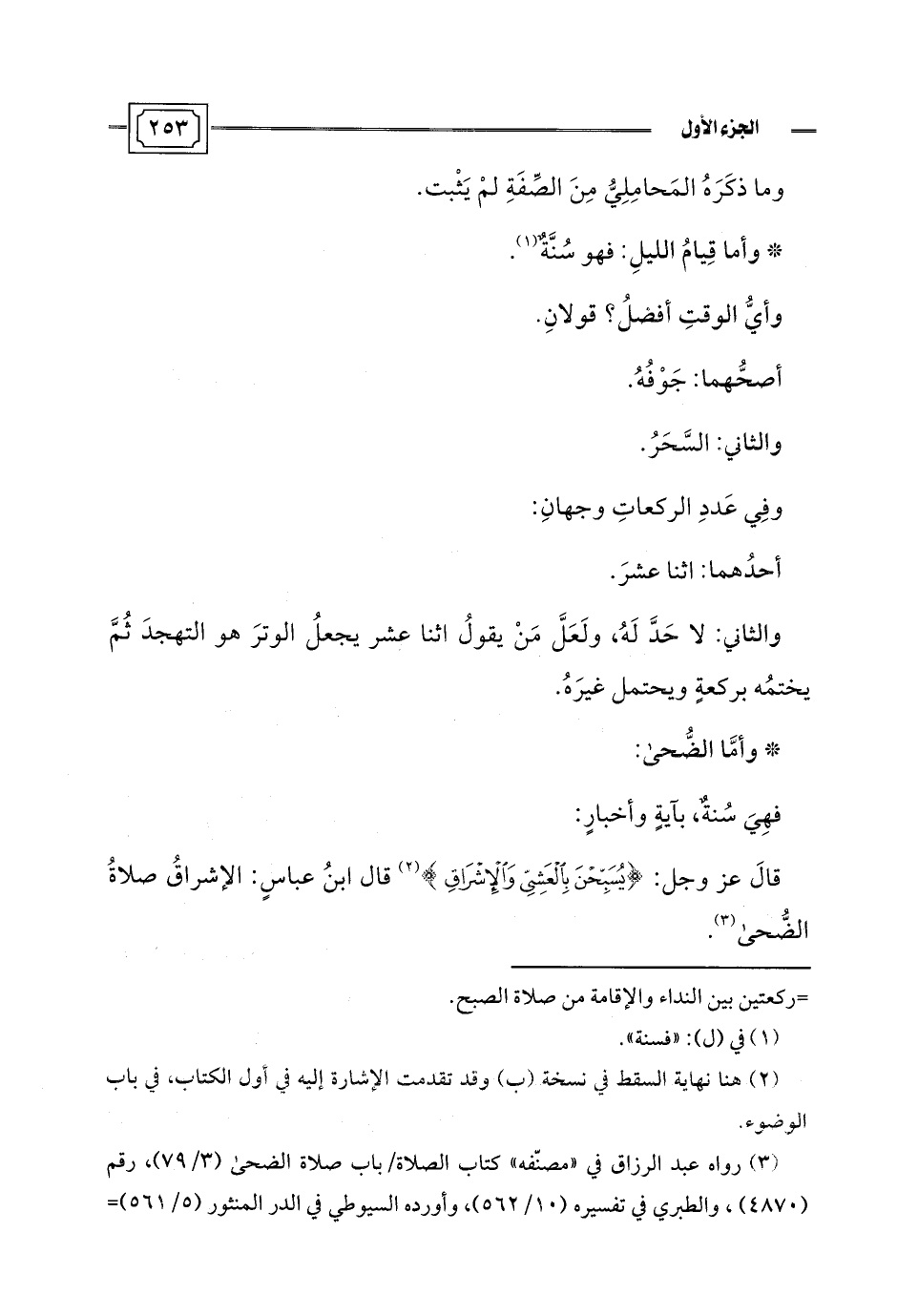 قالَ عز وجل: {يُسَبِّحْنَ بِالْعَشِيِّ وَالْإِشْرَاقِ} (¬2) قال ابنُ عباسٍ: الإشراقُ صلاةُ الضُّحى (¬3).