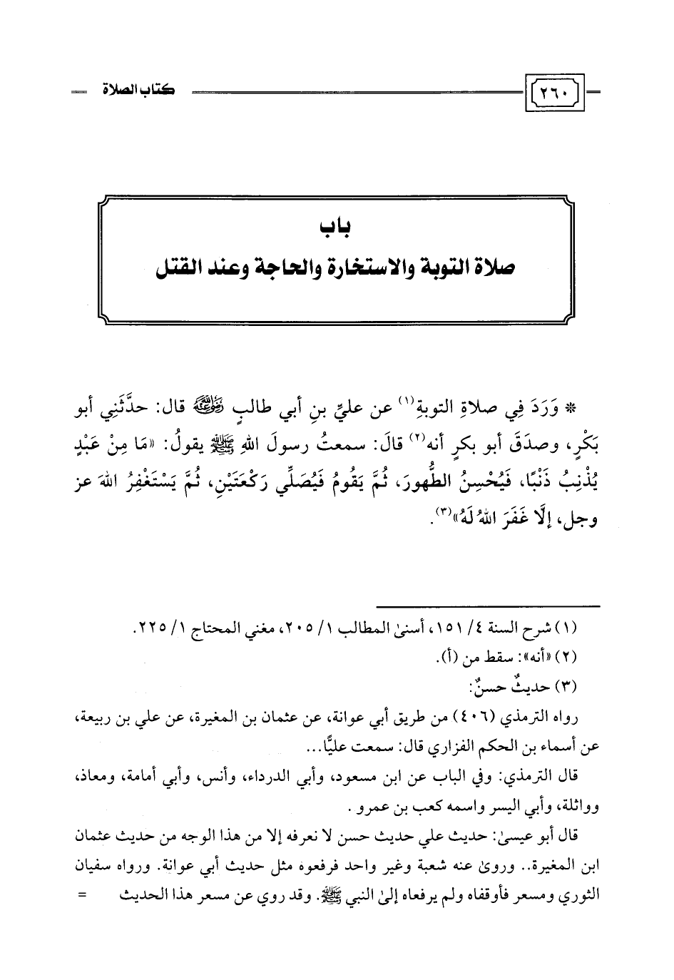 باب صلاة التوبة والاستخارة والحاجة وعند القتل