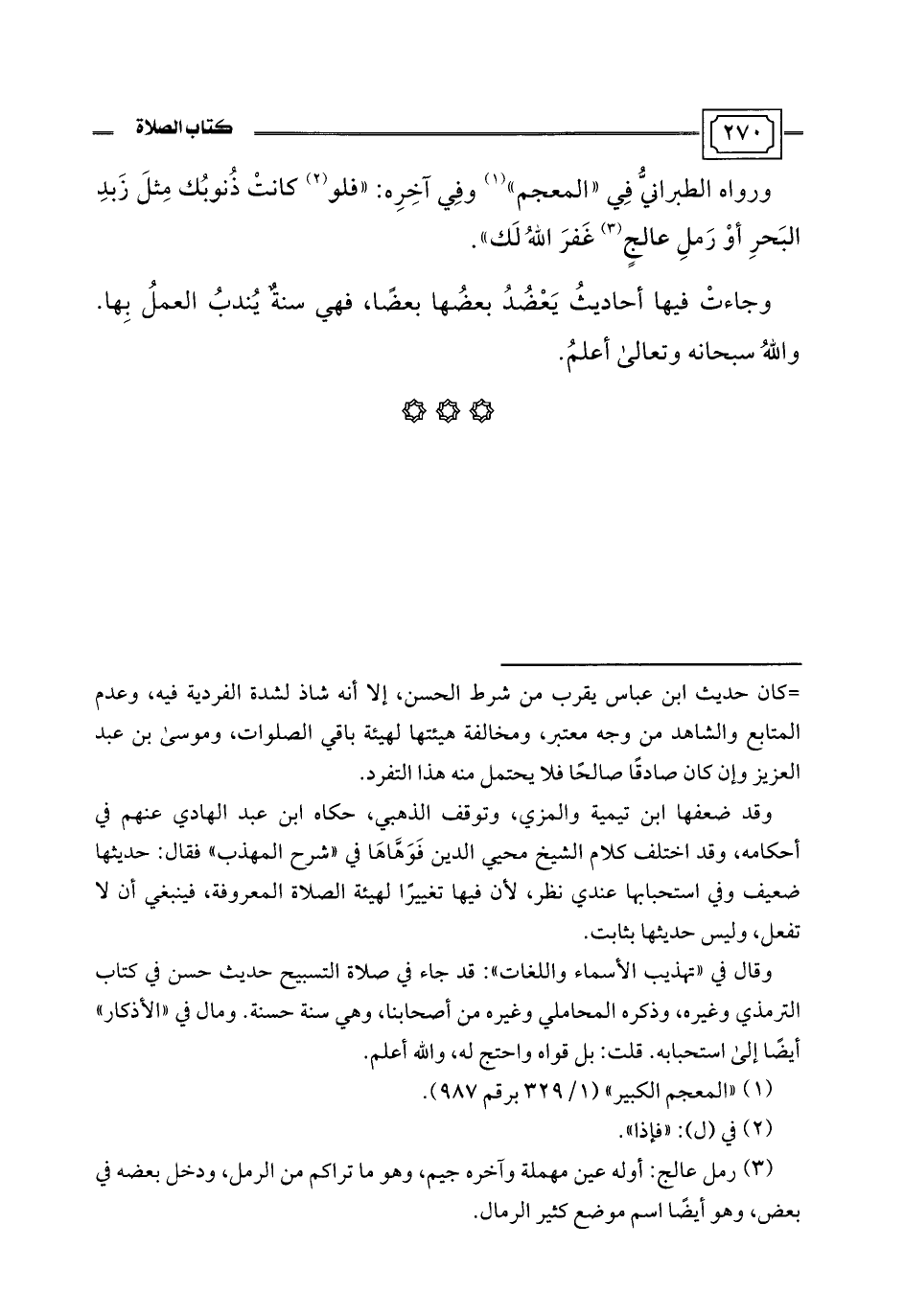 وقال في "تهذيب الأسماء واللغات": قد جاء في صلاة التسبيح حديث حسن في كتاب الترمذي وغيره، وذكره المحاملي وغيره من أصحابنا، وهي سنة حسنة. ومال في "الأذكار" أيضًا إلى استحبابه. قلت: بل قواه واحتج له، واللَّه أعلم.