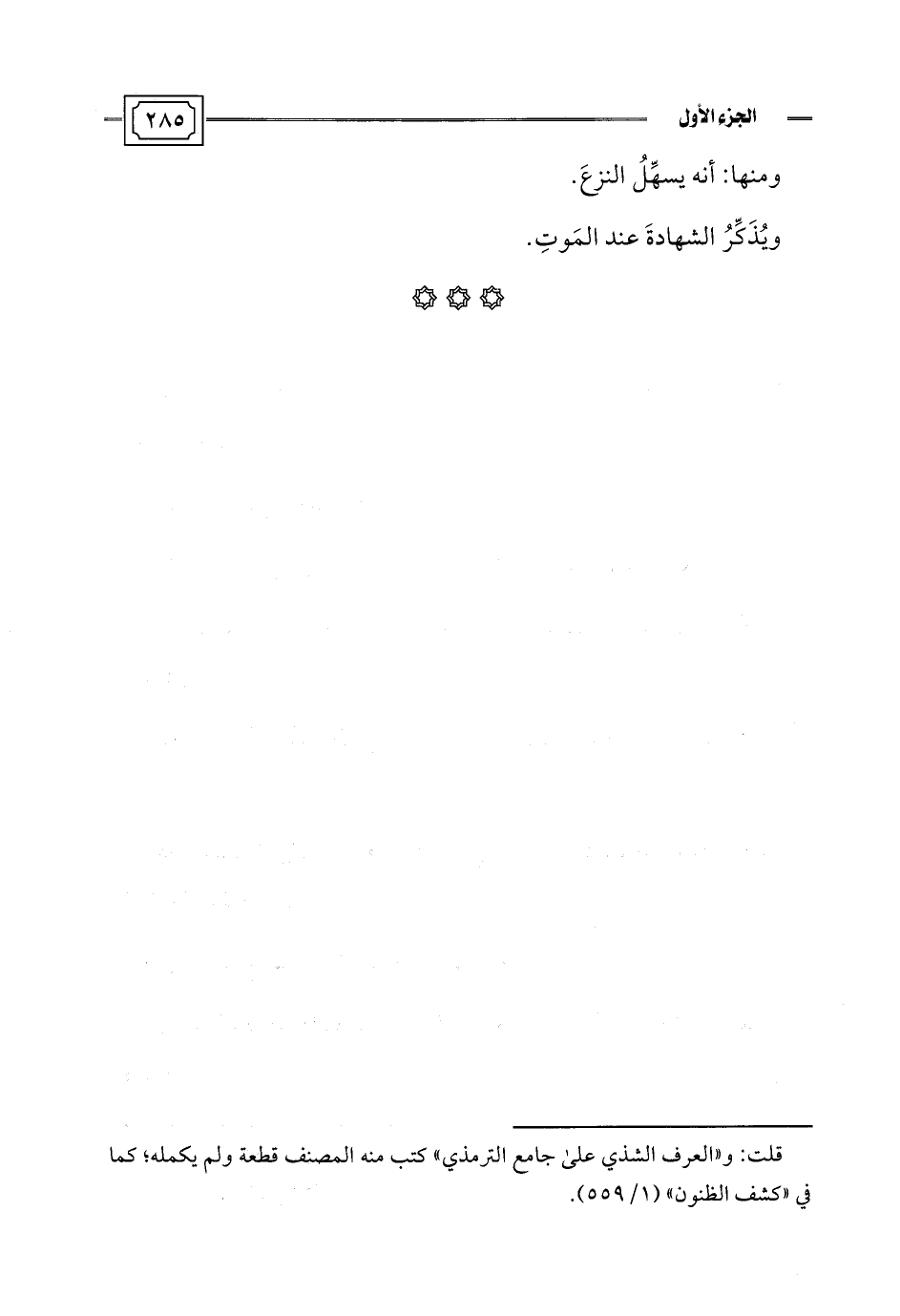قلت: و"العرف الشذي على جامع الترمذي" كتب منه المصنف قطعة ولم يكمله؛ كما في "كشف الظنون" (1/ 559).