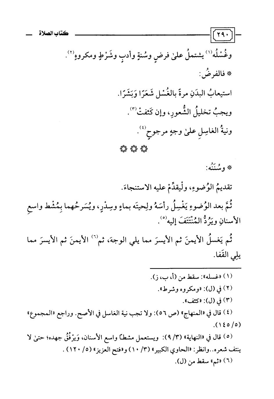 (¬5) قال في "النهاية" (3/ 9): ويستعمل مشطًا واسع الأسنان، وَيرْفُقُ جهده؛ حتى لا ينتف شعره. . وانظر: "الحاوي الكبير" (3/ 10) و"فتح العزيز" (5/ 120).