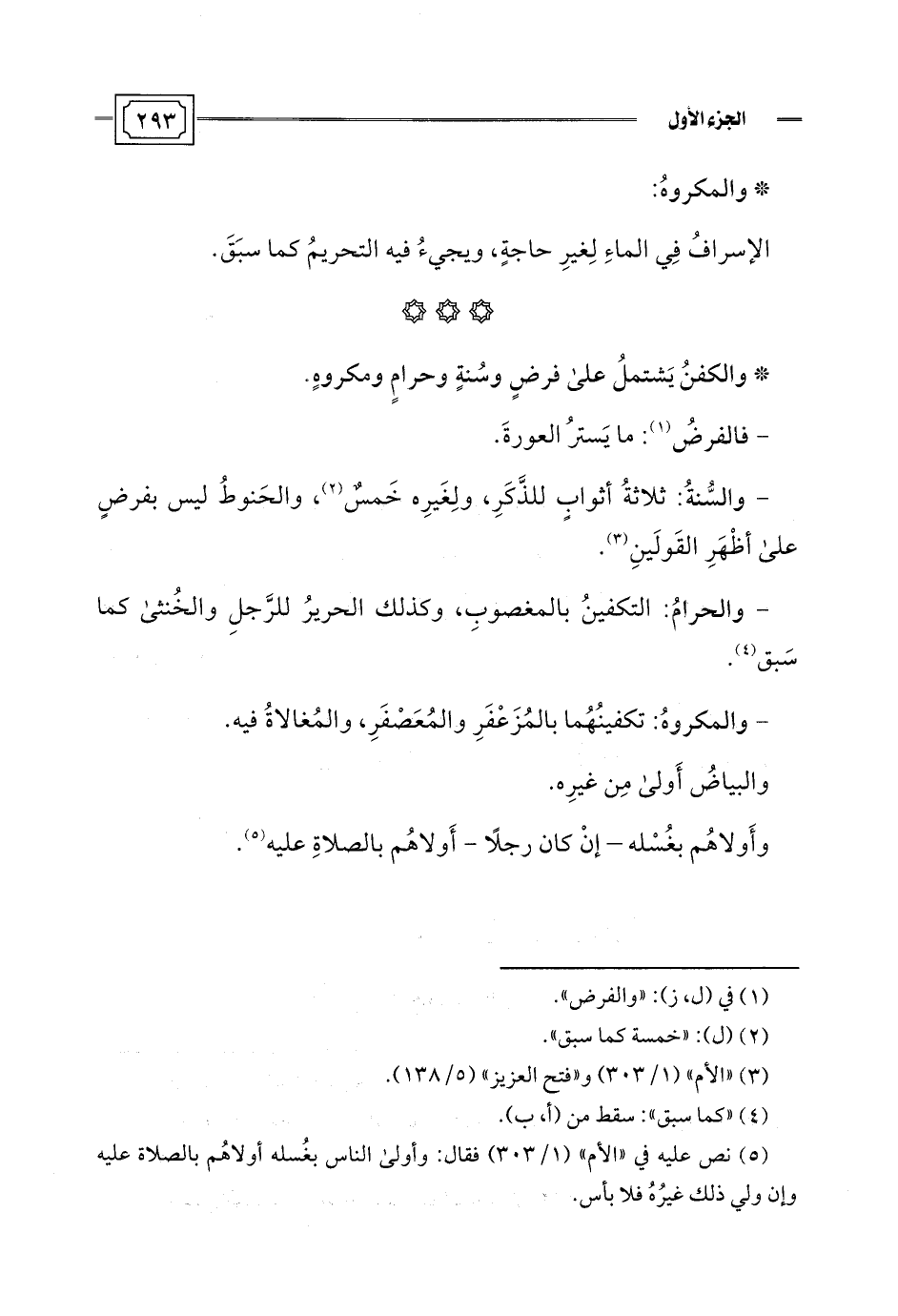 * والكفنُ يَشتملُ علي فرضٍ وسُنةٍ وحرامٍ ومكروهٍ.