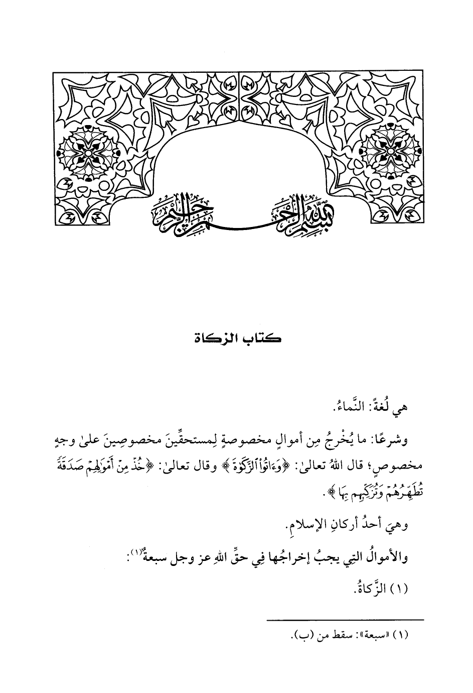 (1) الزَّكاةُ.
