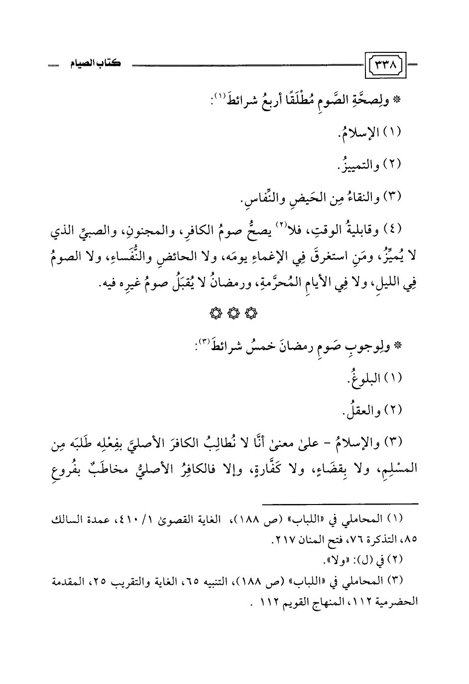 (¬1) المحاملي في "اللباب" (ص 188)، الغاية القصوى 1/ 410، عمدة السالك 85، التذكرة 76، فتح المنان 217.
