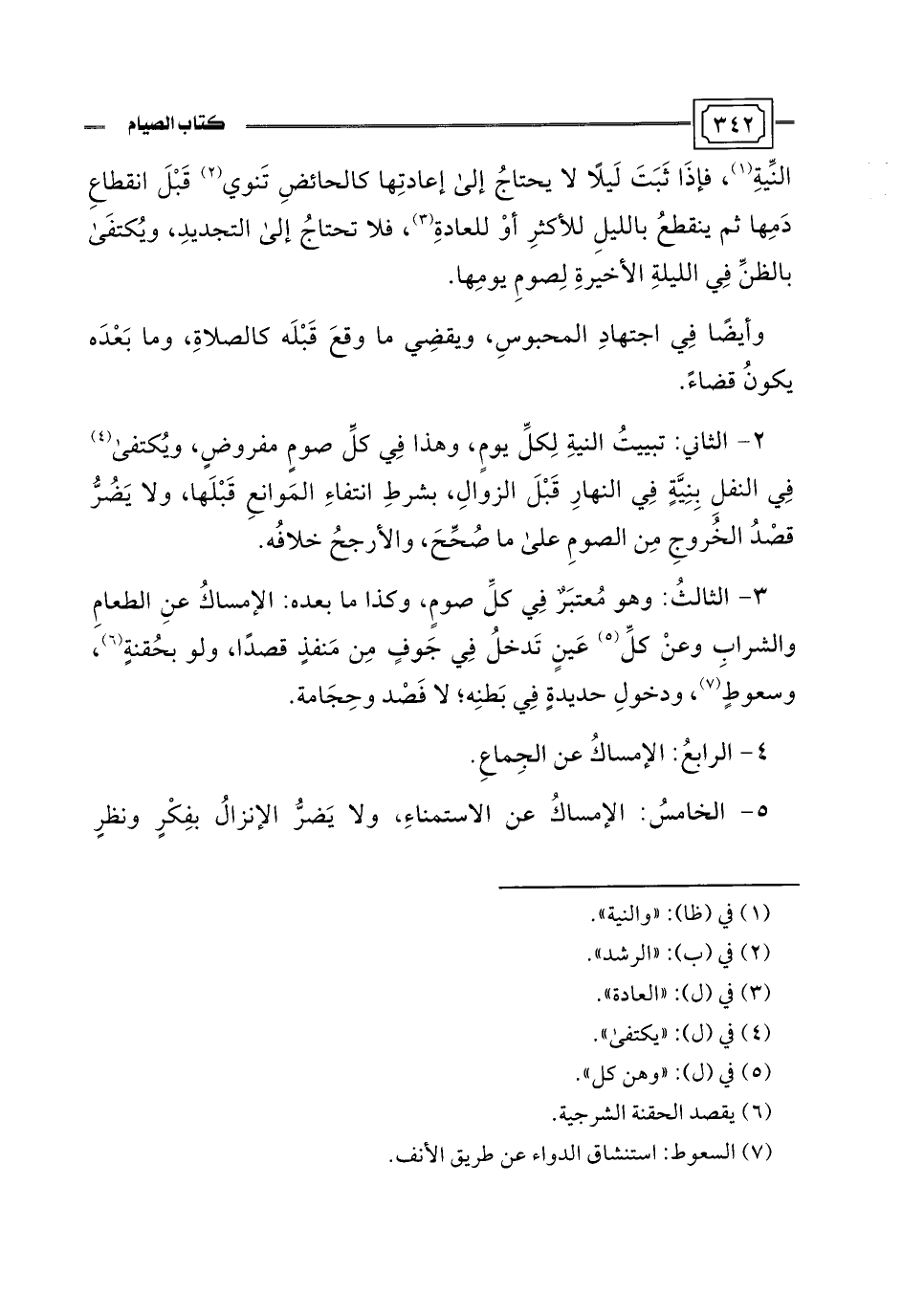 5 - الخامسُ: الإمساكُ عن الاستمناءِ، ولا يَضرُّ الإنزالُ بفِكْرٍ ونظرٍ