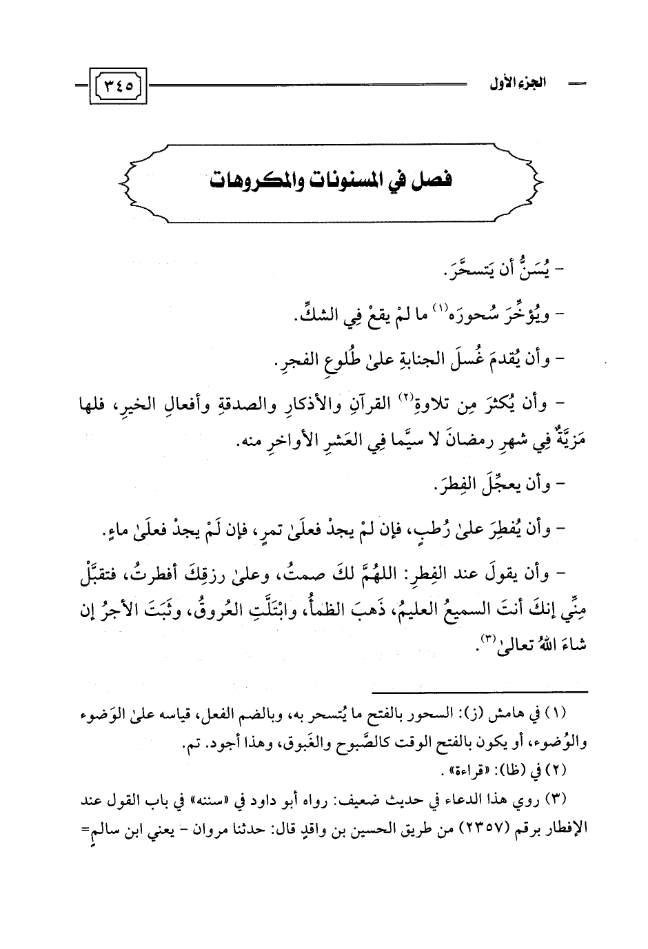 (¬1) في هامش (ز): السحور بالفتح ما يُتسحر به، وبالضم الفعل، قياسه على الوَضوء والوُضوء، أو يكون بالفتح الوقت كالصَّبوح والغَبوق، وهذا أجود. تم.