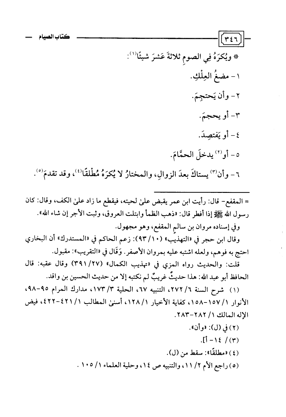 * ويُكرَهُ في الصومِ ثلاثةَ عَشرَ شيئًا (¬1):