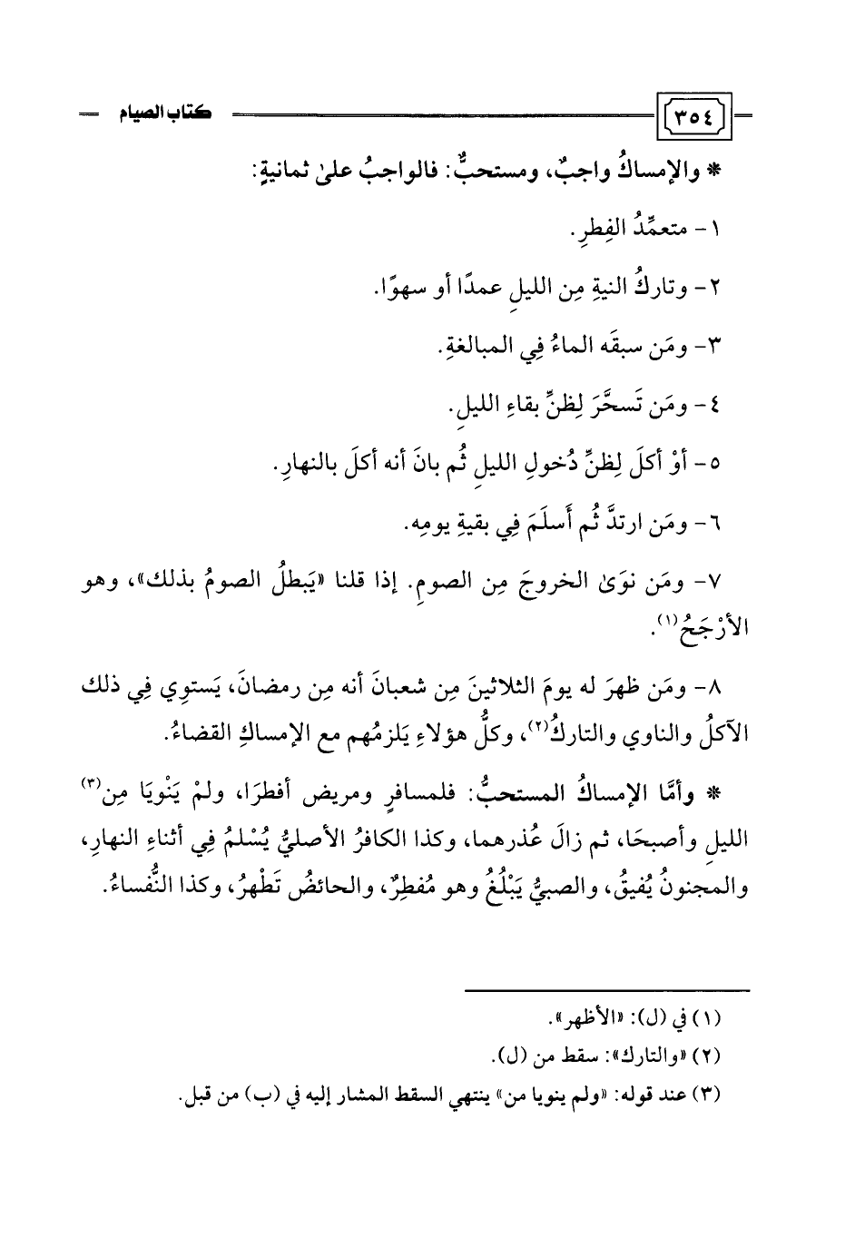* والإمساكُ واجبٌ، ومستحبٌّ: فالواجبُ على ثمانيةٍ: