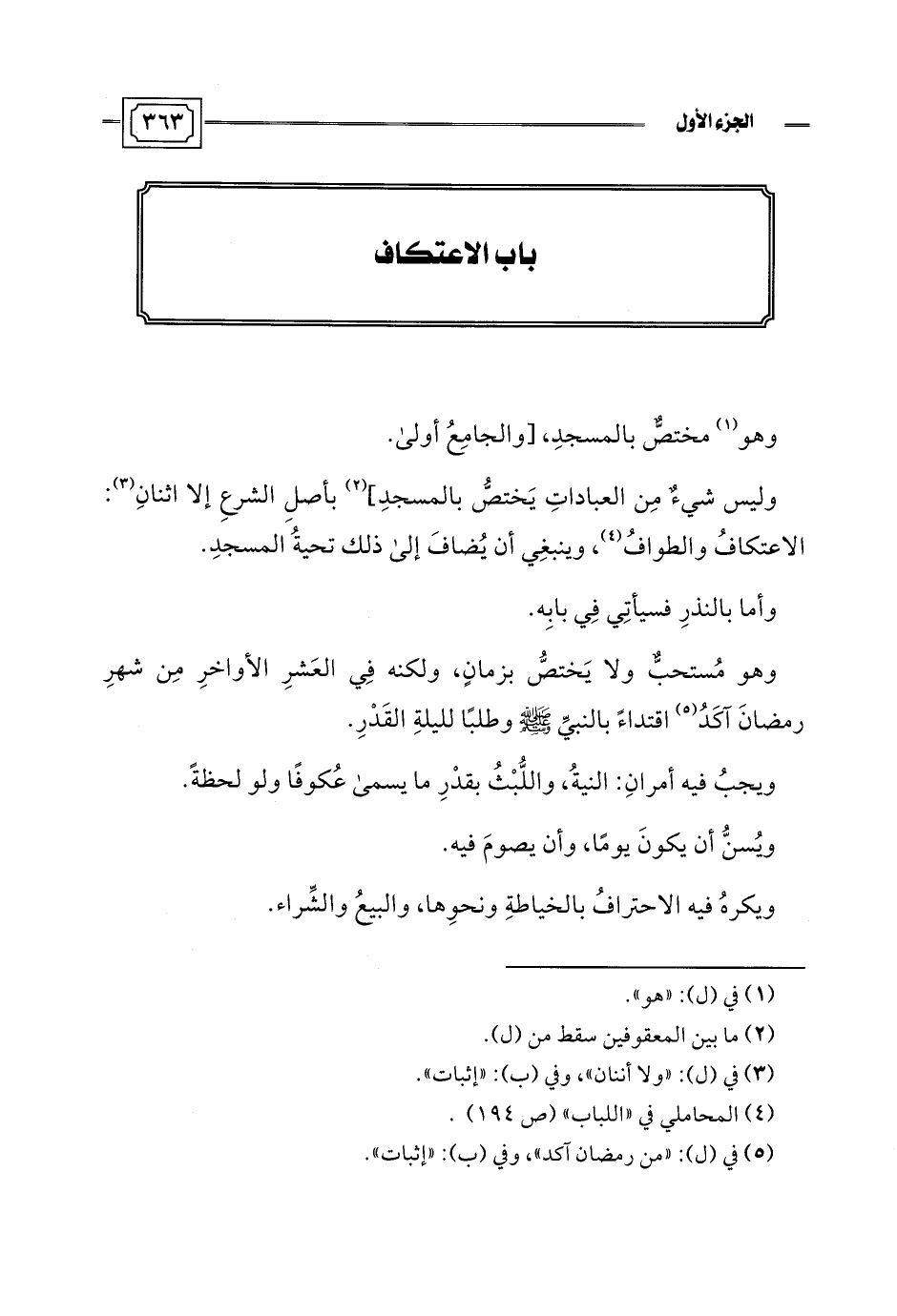 وليس شيءٌ، مِن العباداتِ يَختصُّ بالمسجدِ] (¬2) بأصلِ الشرعِ إلَّا اثنانِ (¬3): الاعتكافُ والطوافُ (¬4)، وينبغِي أن يُضافَ إلى ذلك تحيةُ المسجدِ.