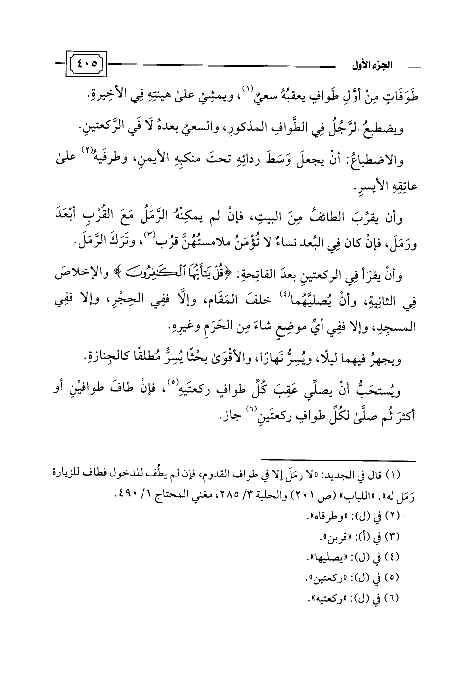 (¬1) قال في الجديد: "لا رمَلَ إلا في طواف القدوم، فإن لم يطُف للدخول فطاف للزيارة رَمَل له". "اللباب" (ص 201) والحلية 3/ 285، مغني المحتاج 1/ 490.