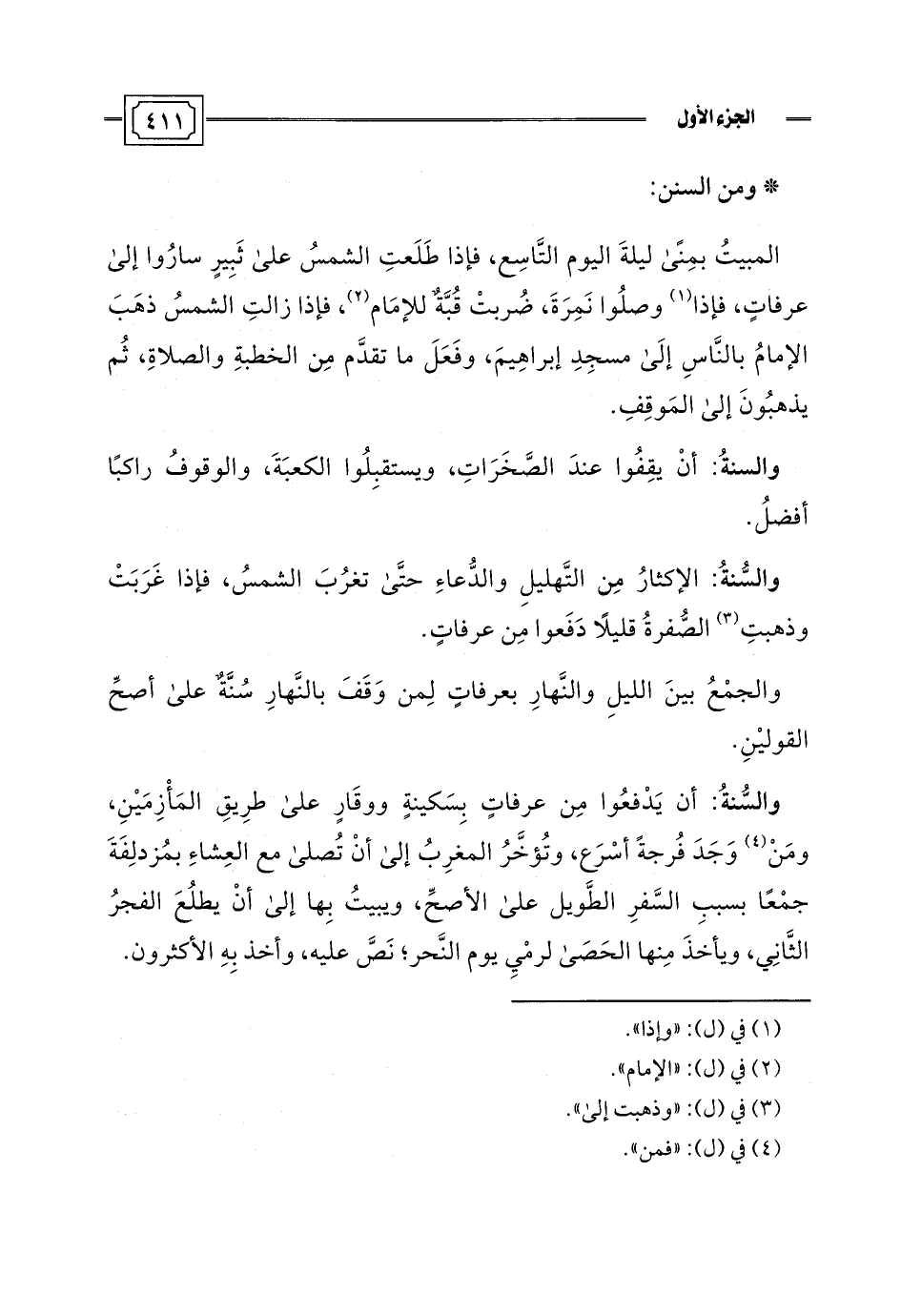 والسُّنةُ: الإكثارُ مِن التَّهليل والدُّعاءِ حتَّى تغرُبَ الشمسُ، فإذا غَرَبَتْ وذهبتِ (¬3) الصُّفرةُ قليلًا دَفعوا مِن عرفاتٍ.