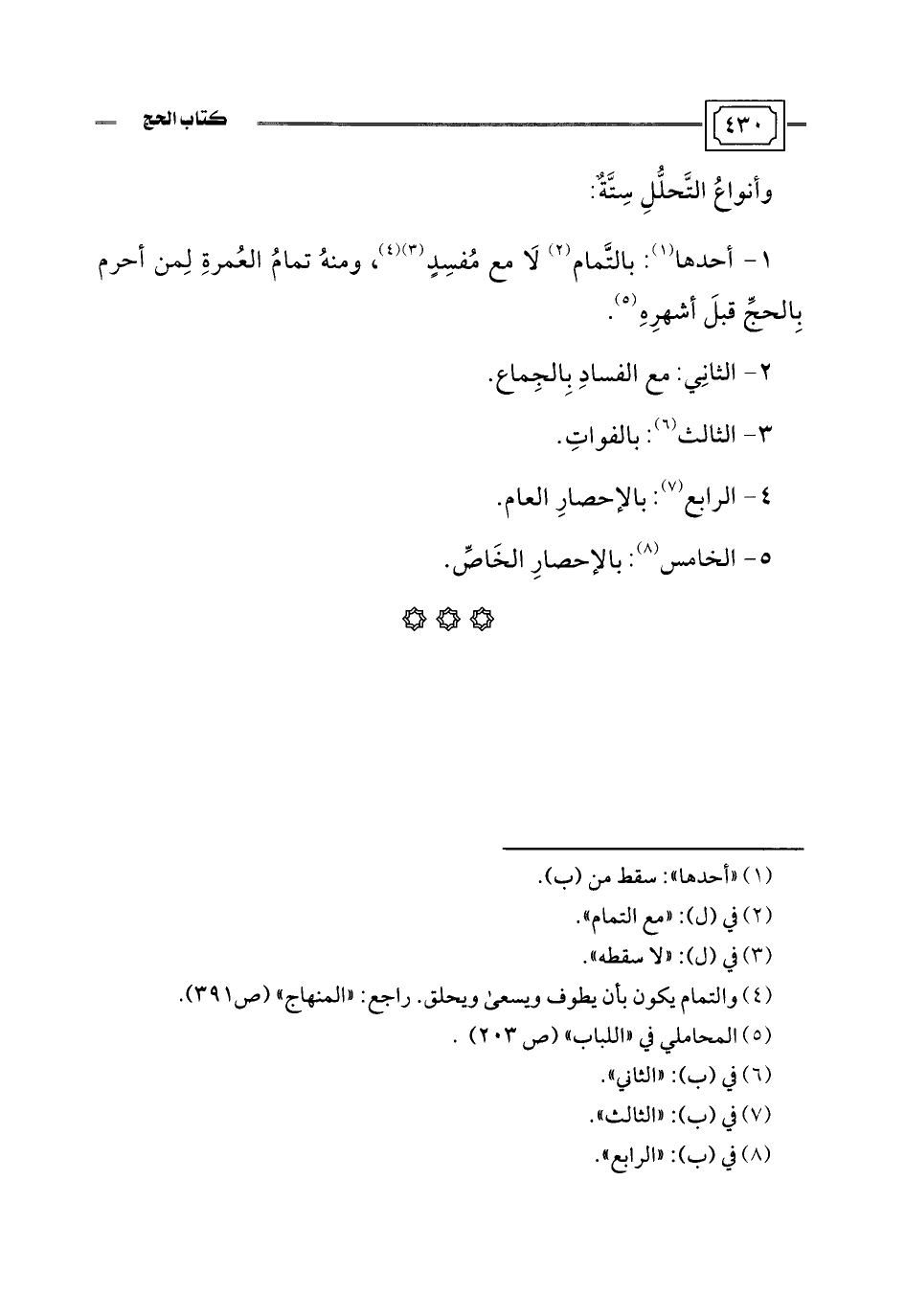 (¬4) والتمام يكون بأن يطوف ويسعى ويحلق. راجع: "المنهاج" (ص 391).