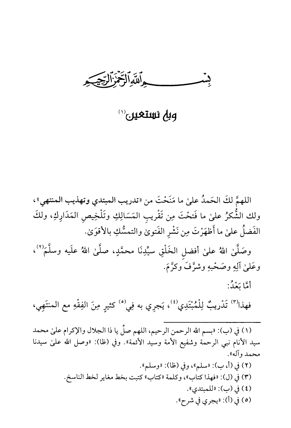 اللهمَّ لكَ الحَمدُ على ما مَنَحْتَ من "تدريب المبتدي وتهذيب المنتهي"، ولك الشُّكرُ على ما فَتحْتَ مِن تَقْريبِ المَسَالِكِ وتَلْخِيصِ المَدَارِكِ، ولكَ الفَضلُ على ما أَظهَرْتَ مِن نَشْرِ الفَتوى والتمسُّكِ بالأقوَى.